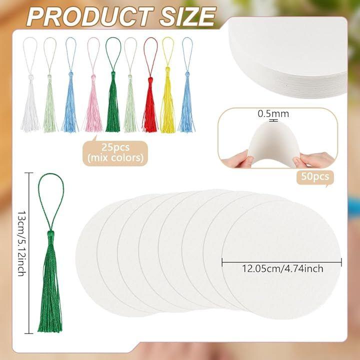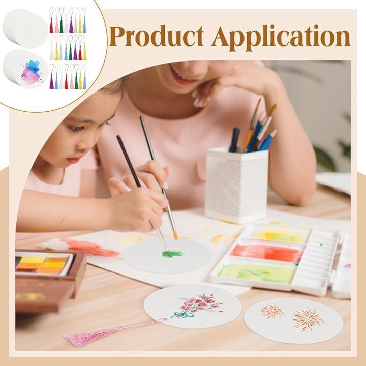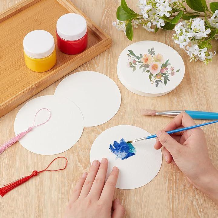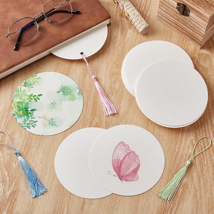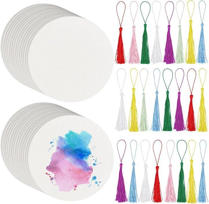 パッケージ内容:各パックにはラウンドの水彩紙50枚と25個のカラフルタッセルが含まれています。