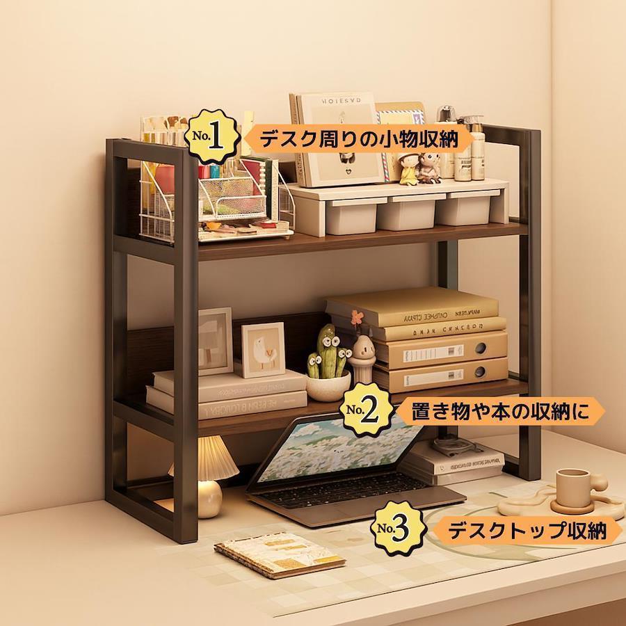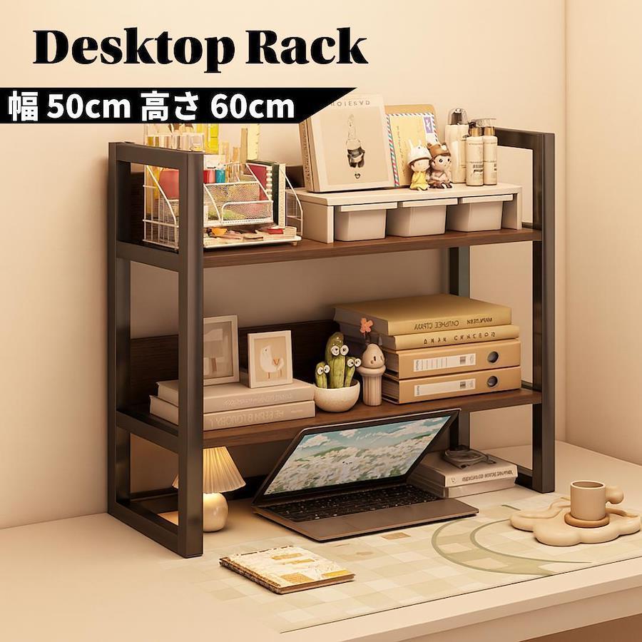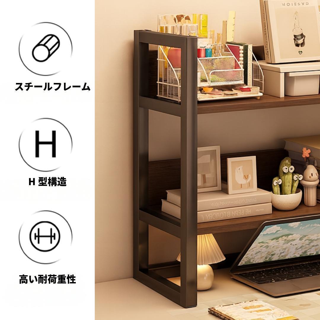 デスクラック 卓上ラック 収納ラック 棚 机上ラック 本棚 スチールラック デスク上収納 省スペース 木目 おしゃれ 組立簡単 幅50cm 高さ60cm H型フレーム サイドガード 安定 耐荷重 在宅ワーク 勉強机 書斎 オフィス モニター上ラック 北欧風 シンプル ブラウン ブラック