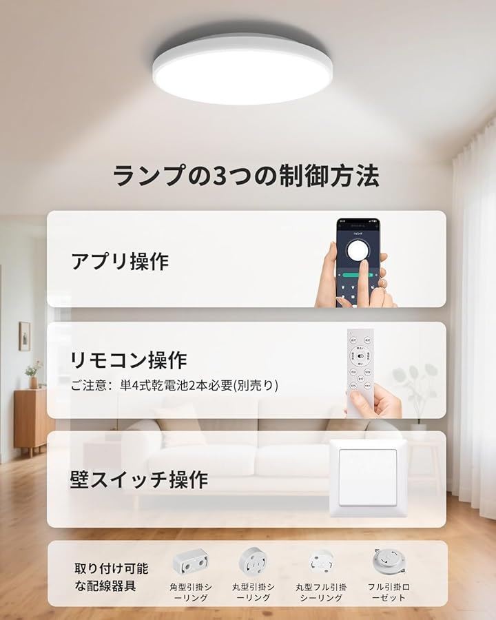 「便利なリモコン操作」リモコンで点灯・消灯はもちろん、調光・調色も長押し操作で無段階に調整可能です。