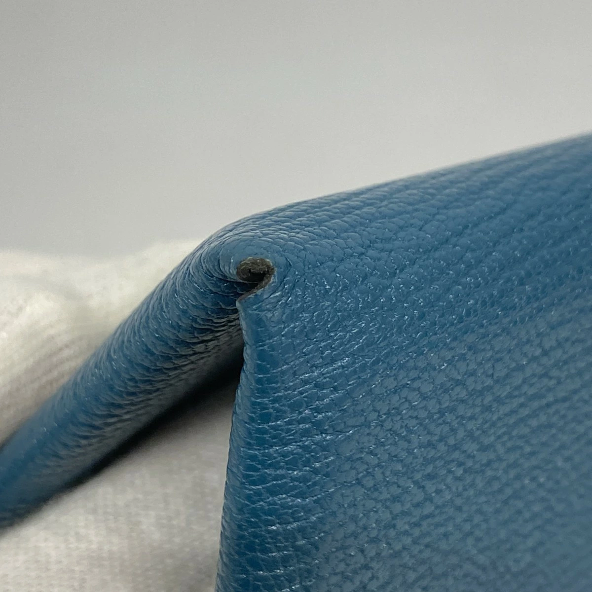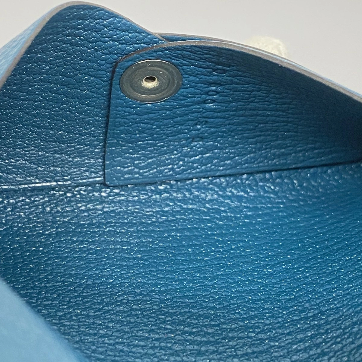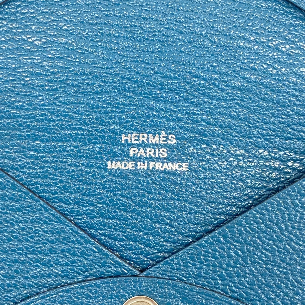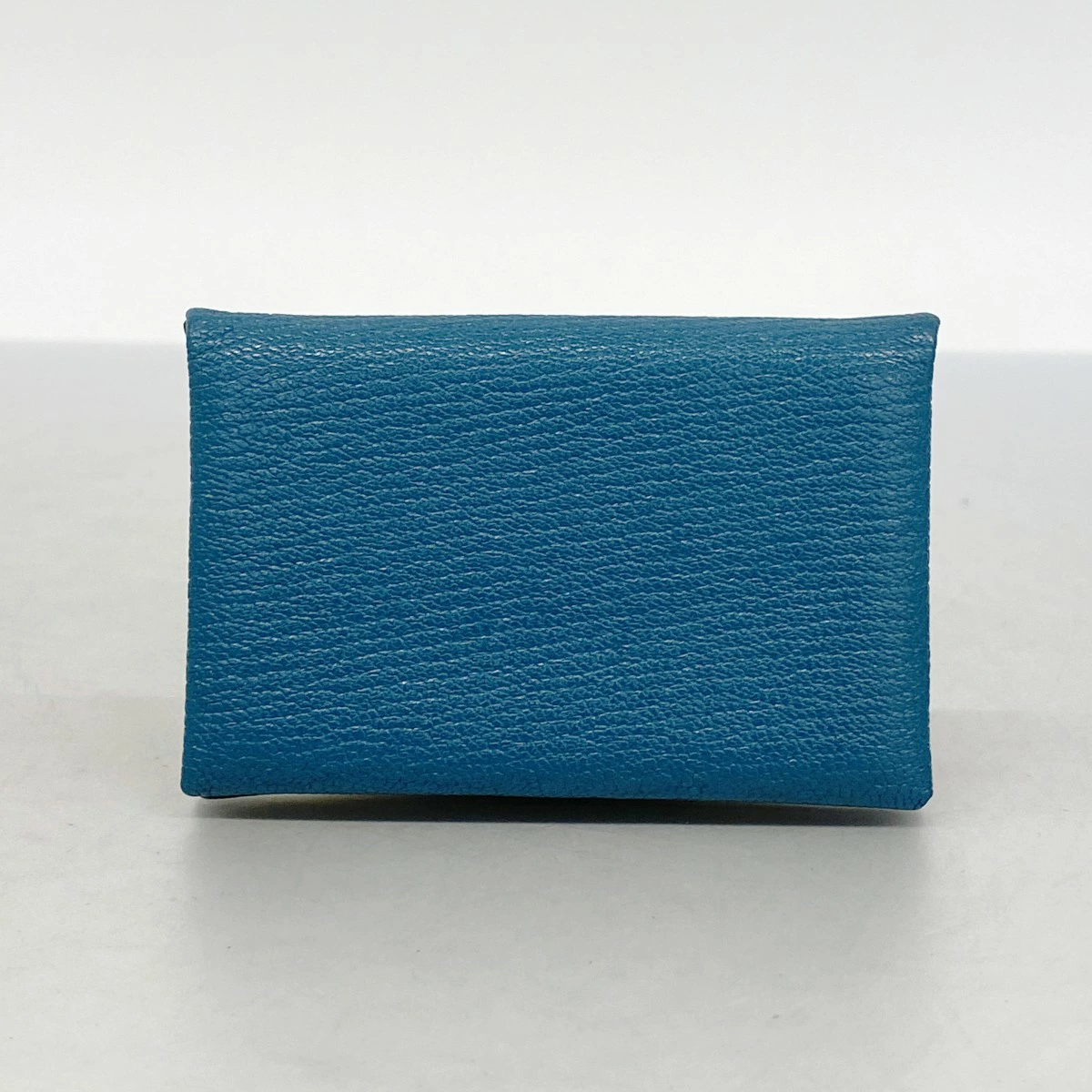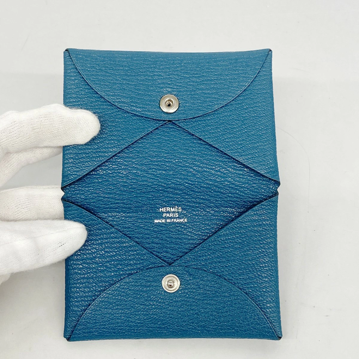 [5pa0603] Hermès Calvi Chevre Mysore Vert Bosphore Card Case, Silver Hardware, D Stamp, Pre-owned, Men's, Women's, Unisex