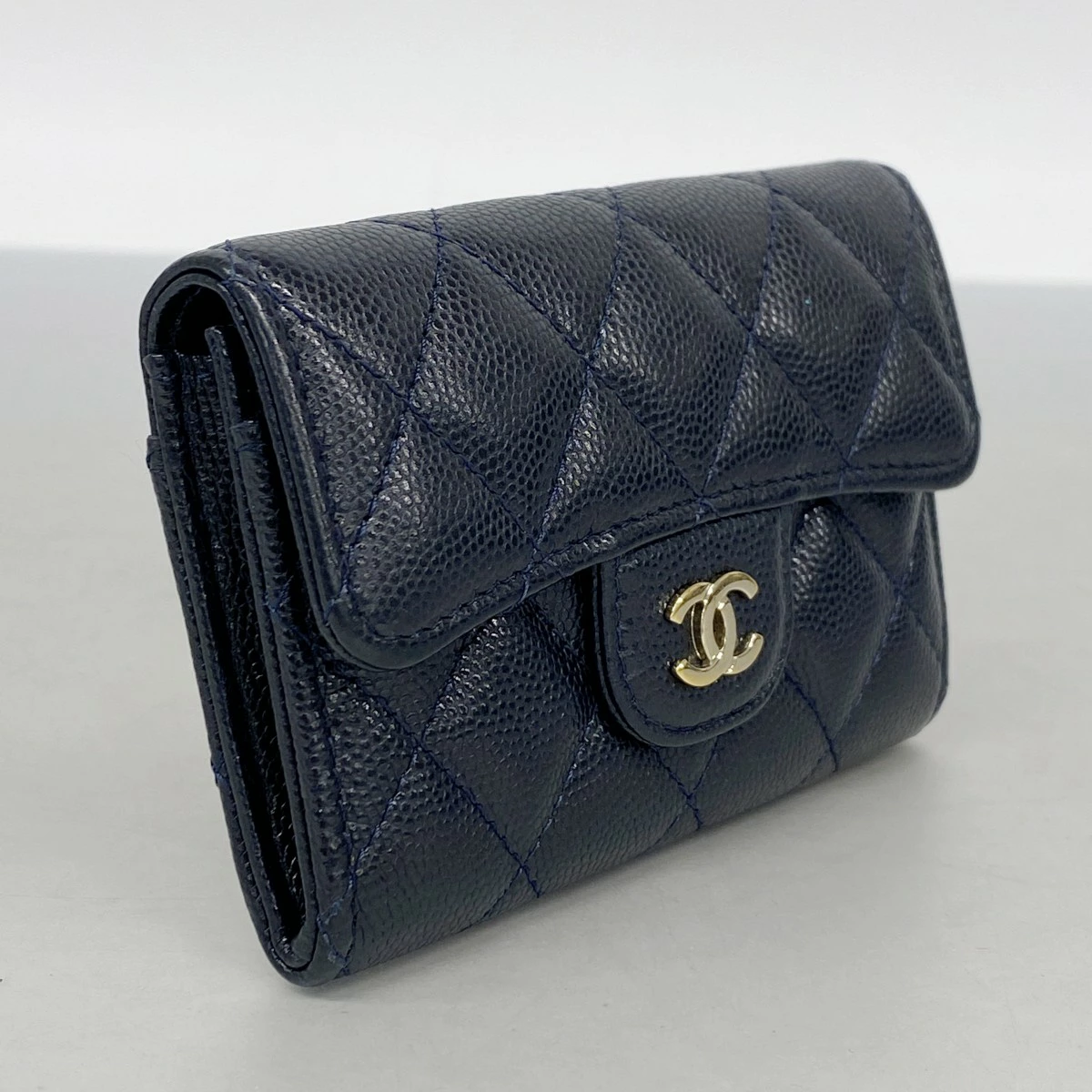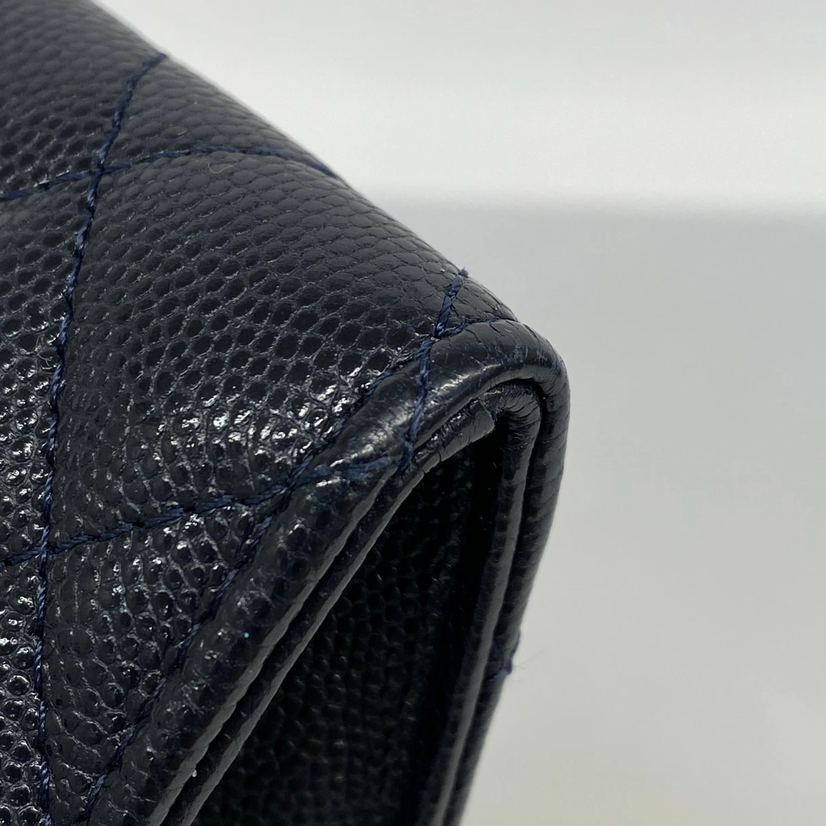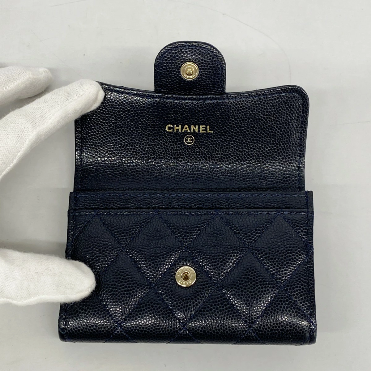 【5pb2668】シャネル カードケース マトラッセ キャビアスキン ネイビー ゴールド金具【中古】レディース