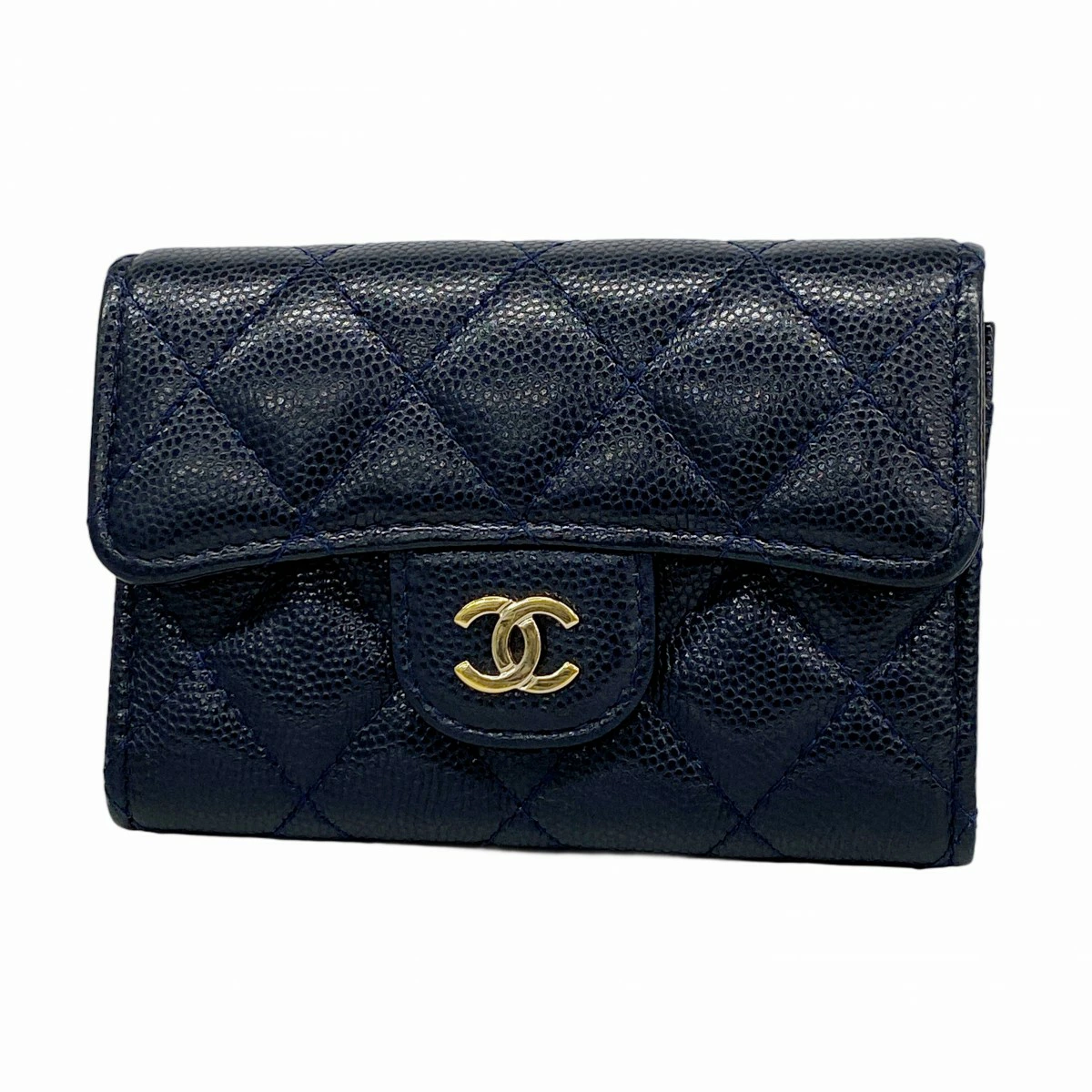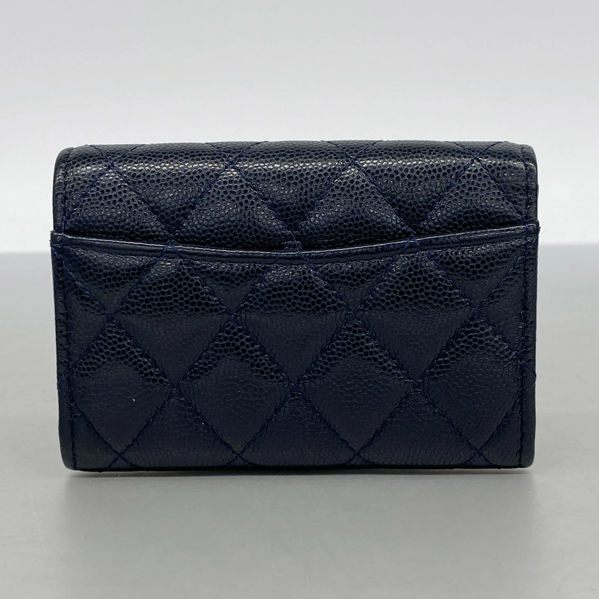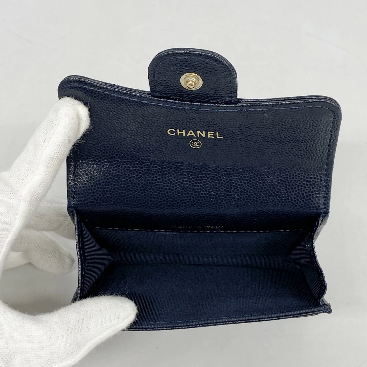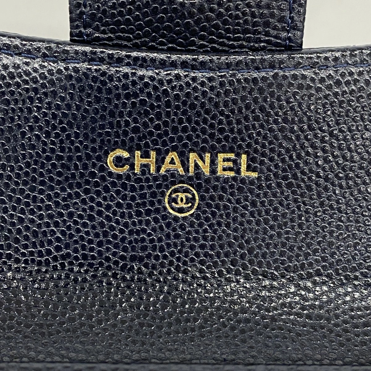 【5pb2668】シャネル カードケース マトラッセ キャビアスキン ネイビー ゴールド金具【中古】レディース