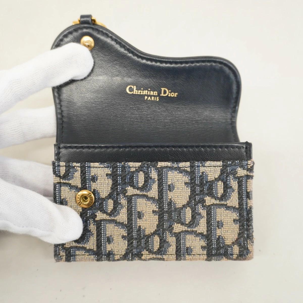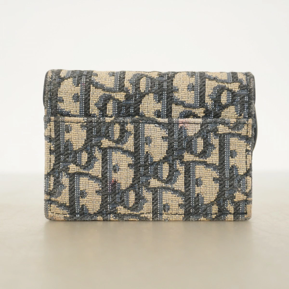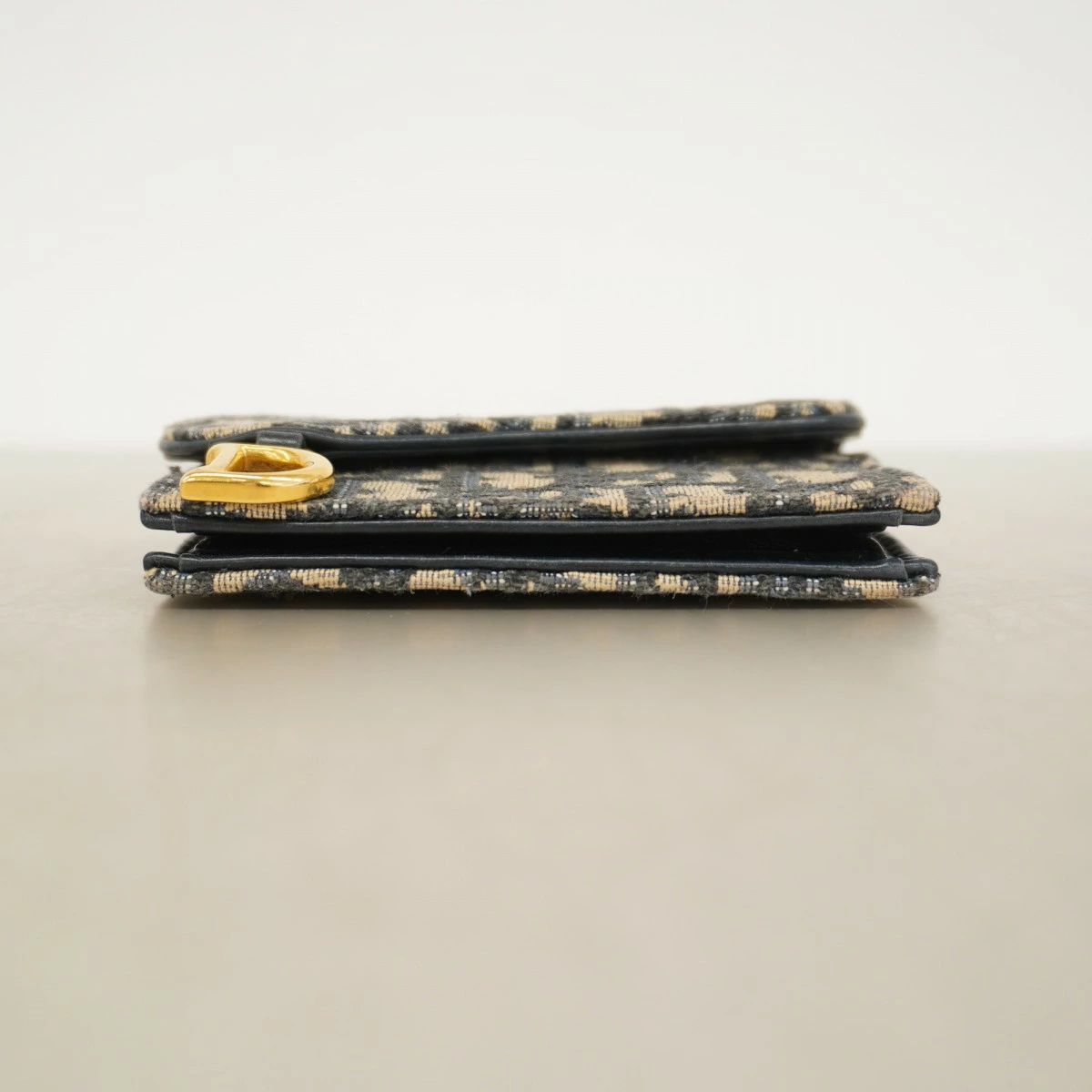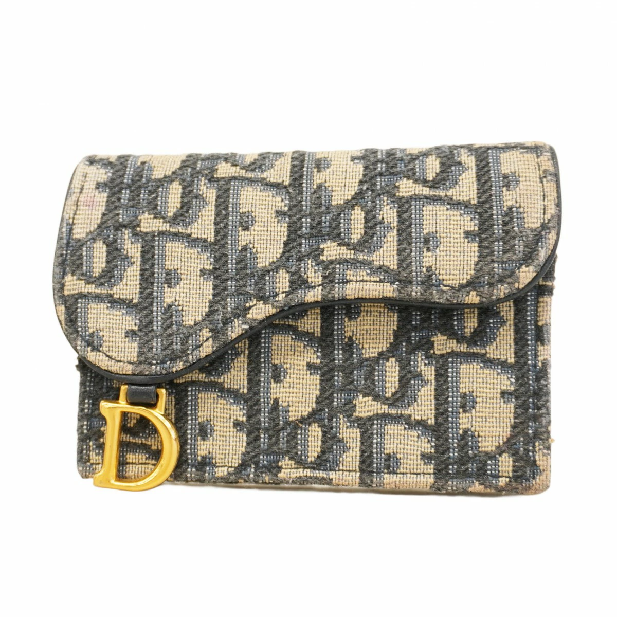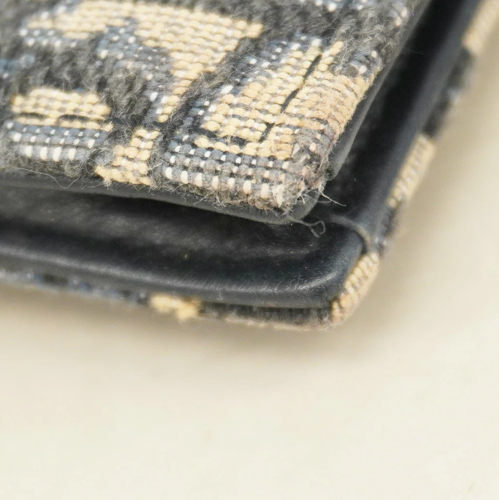 【5pb3044】クリスチャンディオール カードケース オブリーク キャンバス ネイビー ゴールド金具【中古】レディース
