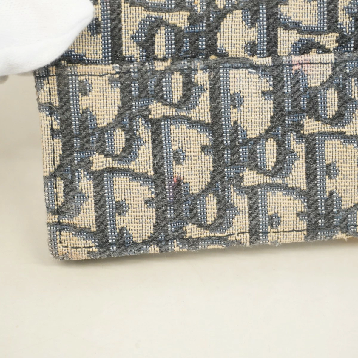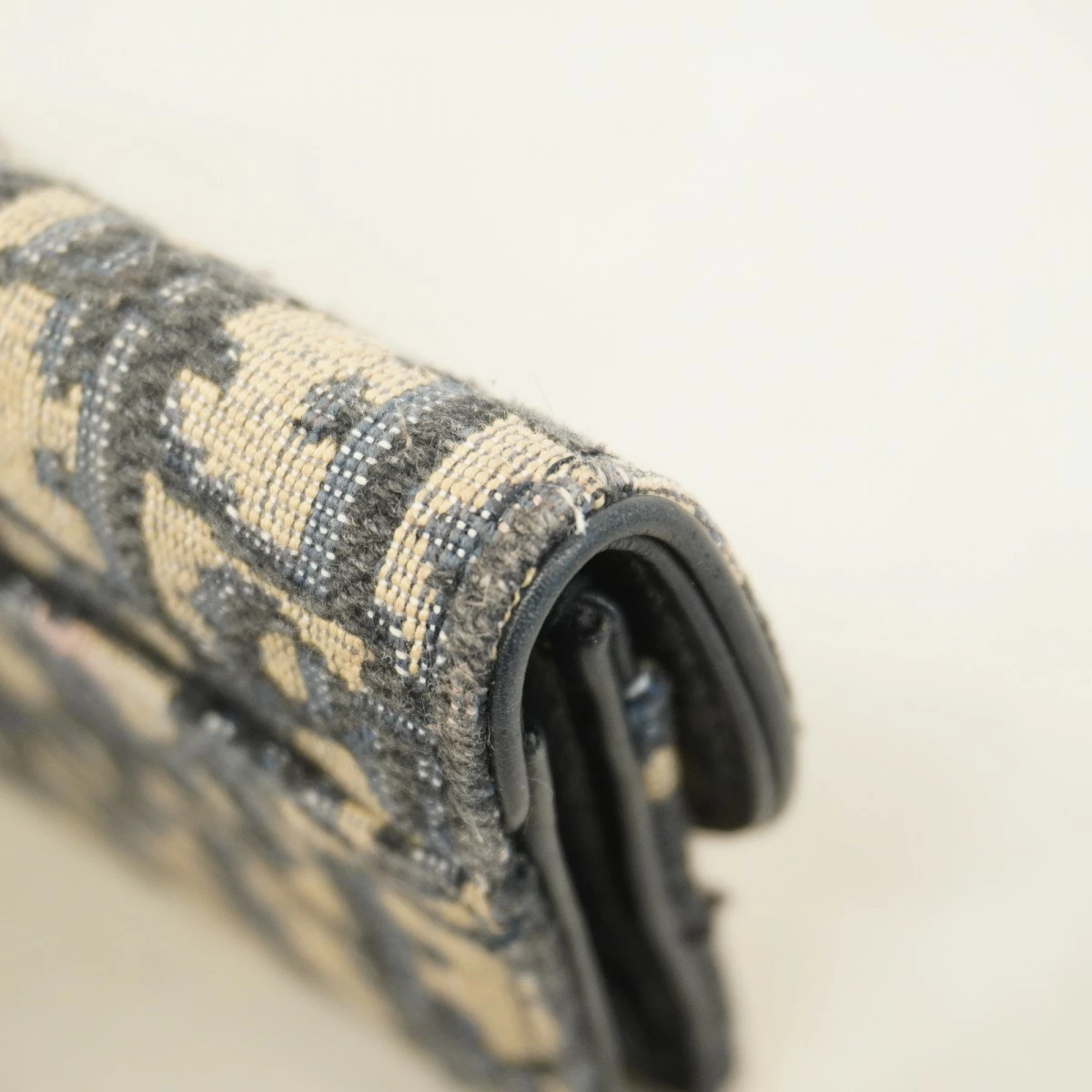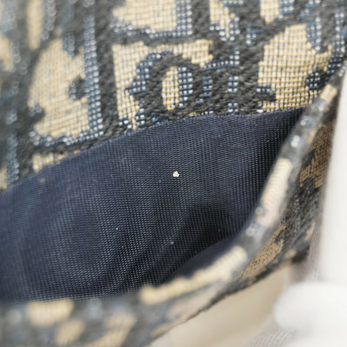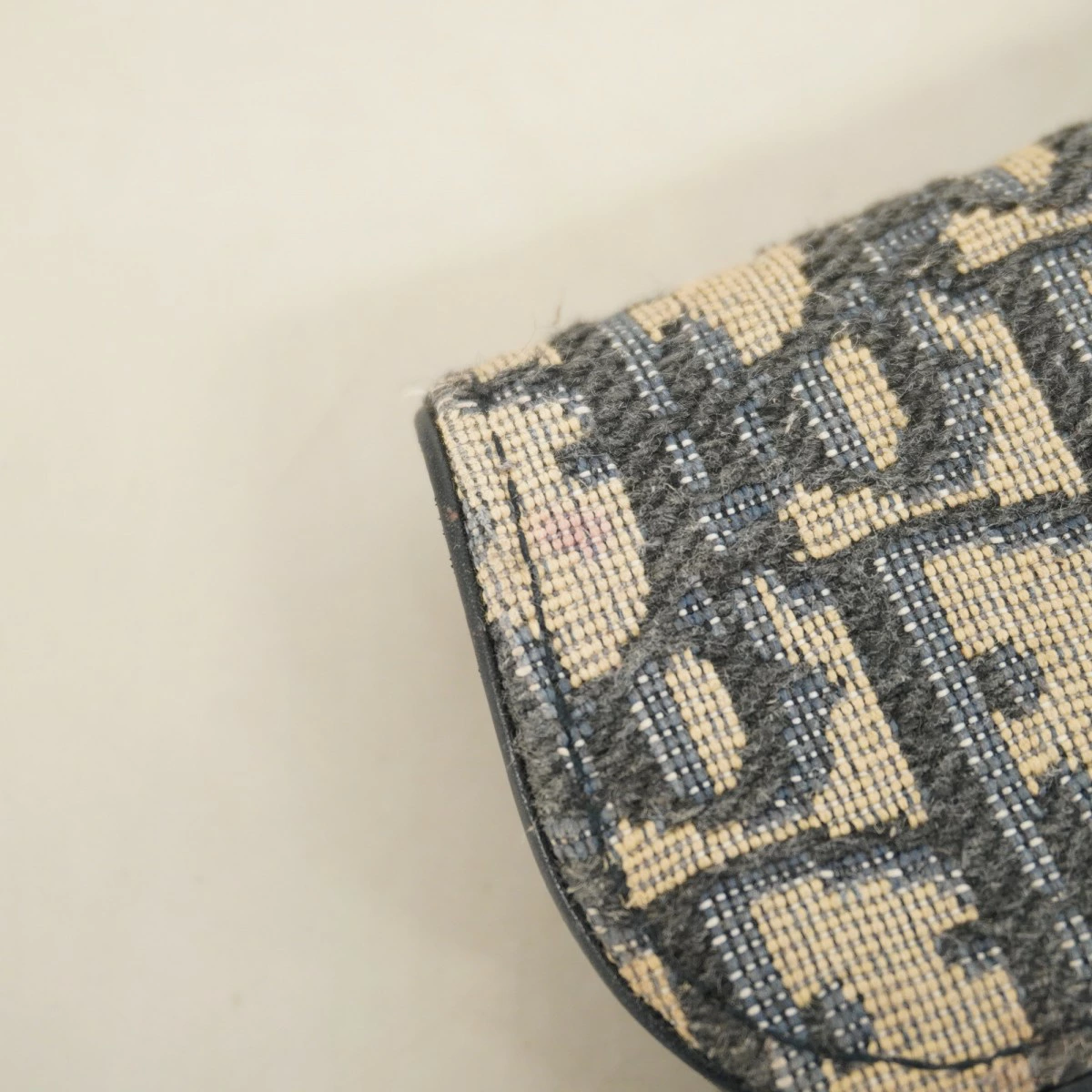 【5pb3044】クリスチャンディオール カードケース オブリーク キャンバス ネイビー ゴールド金具【中古】レディース
