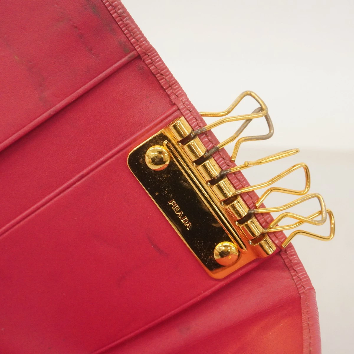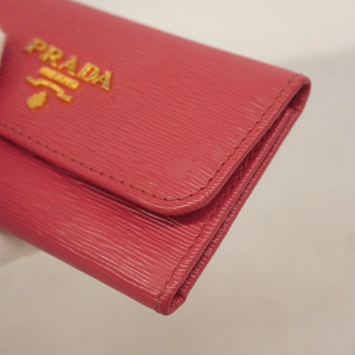 【5pc3141-k】プラダ キーケース サフィアーノ レザー ピンク ゴールド金具【中古】レディース