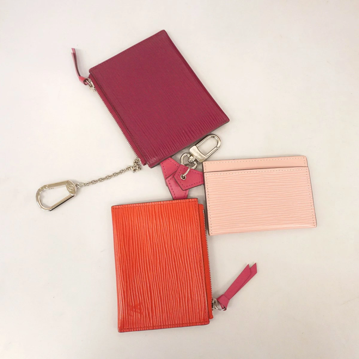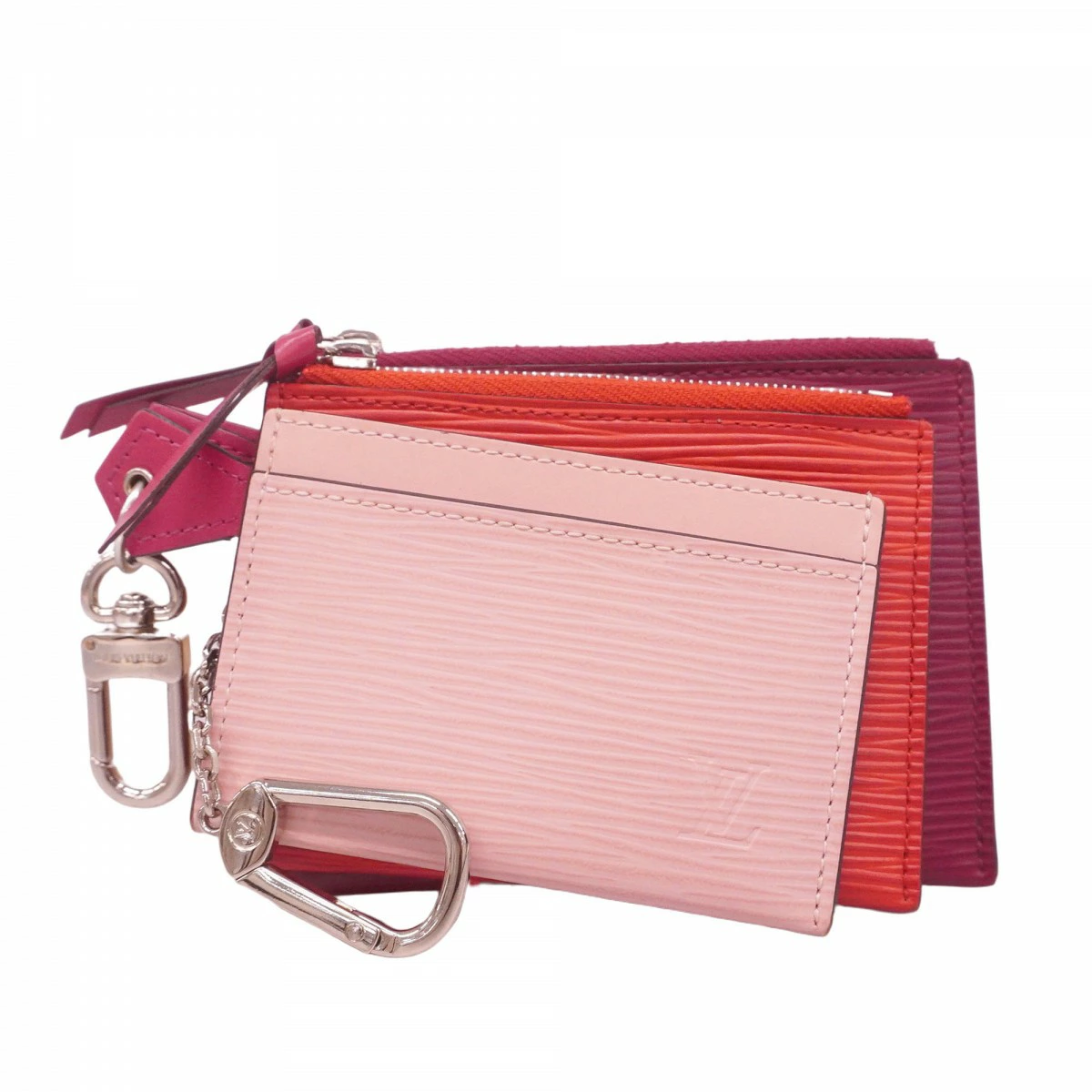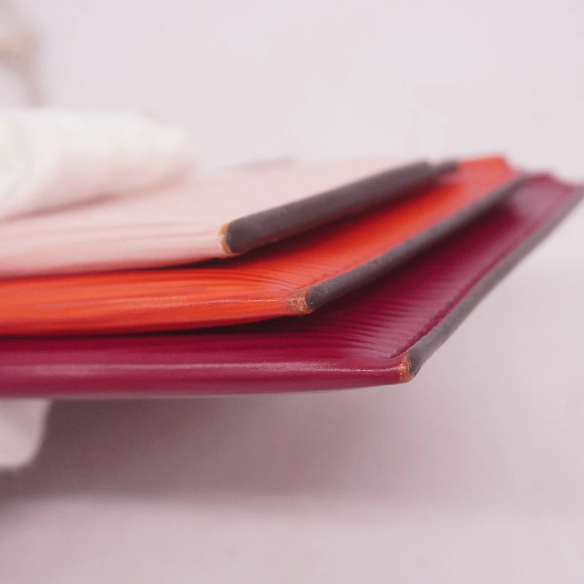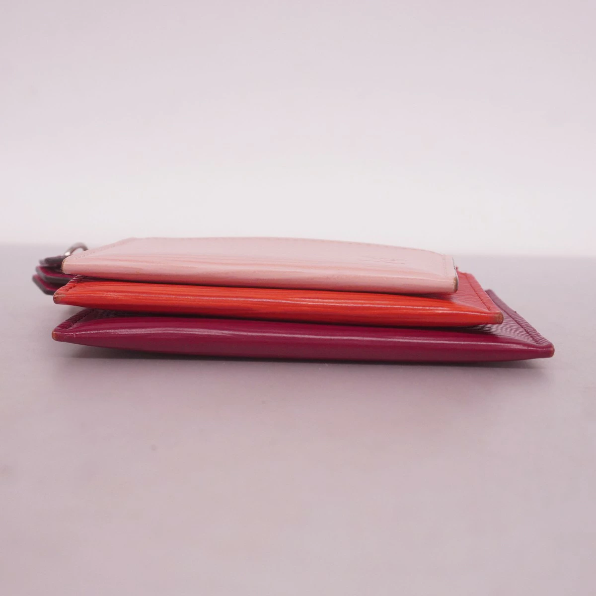 [5pc3347] Louis Vuitton Epi Trio Pass Card Case M62254 Pink, Red, Wine Red [Pre-owned] Women's