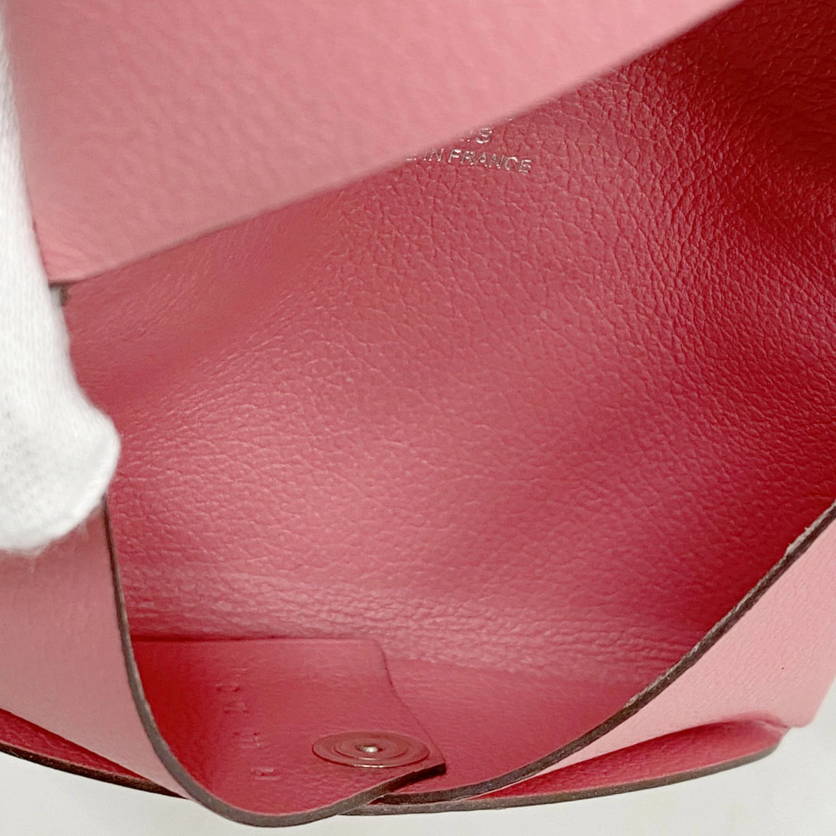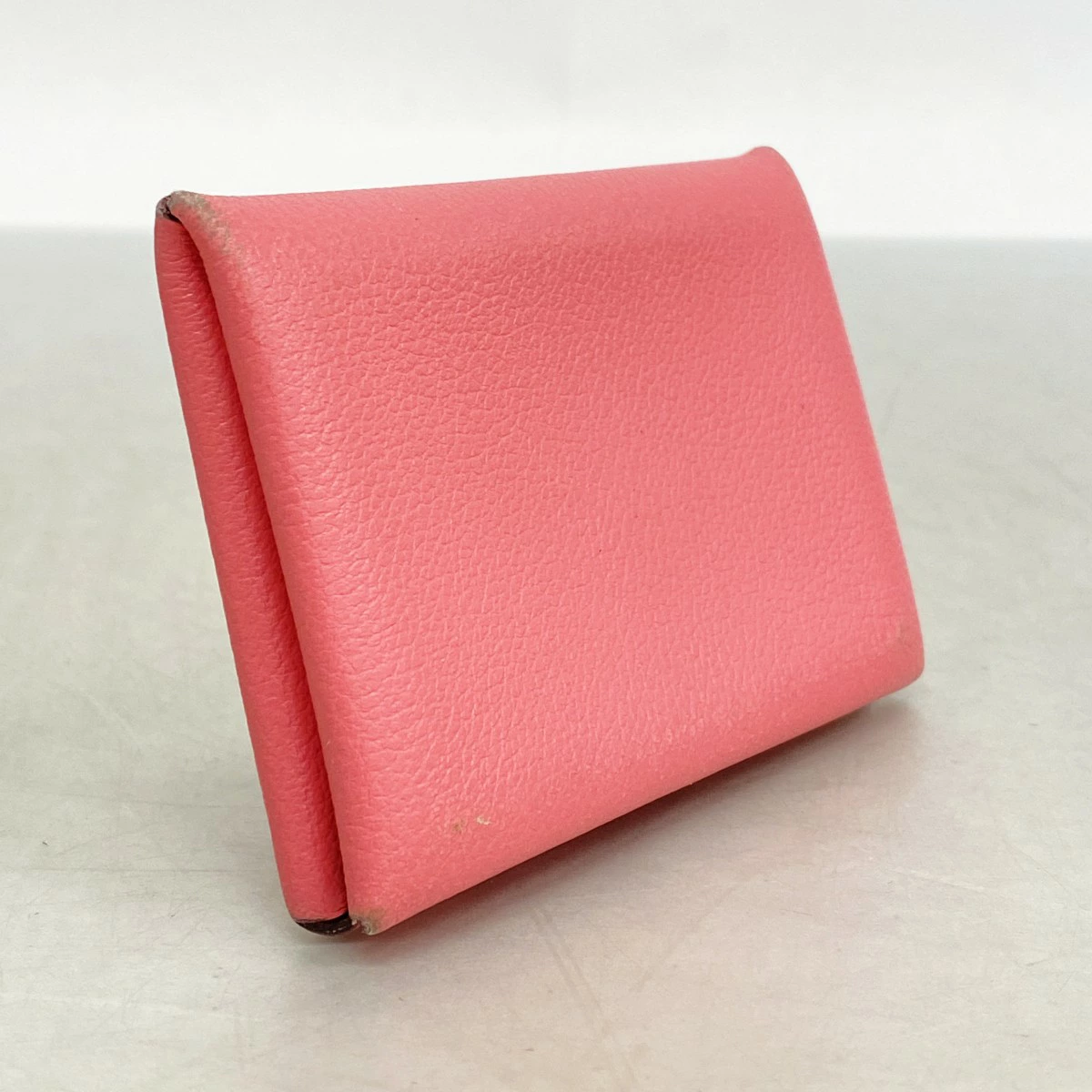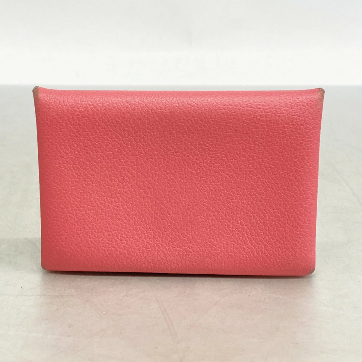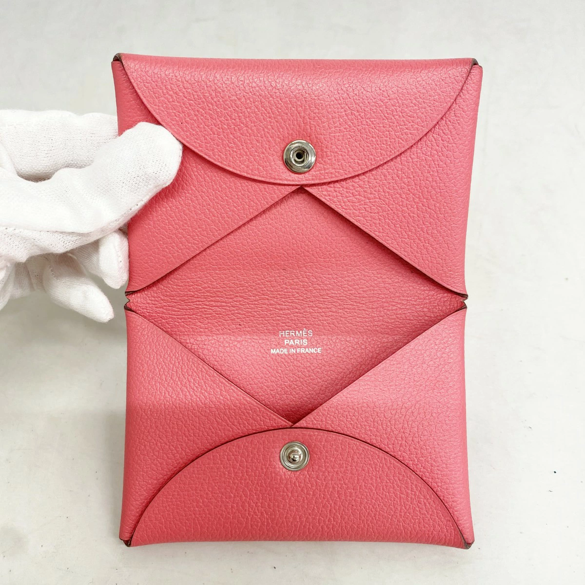[5pc4651] Hermès Calvi Card Case, Evercolor Rose Azalee, Silver Hardware, D Stamp, Pre-owned, Women's