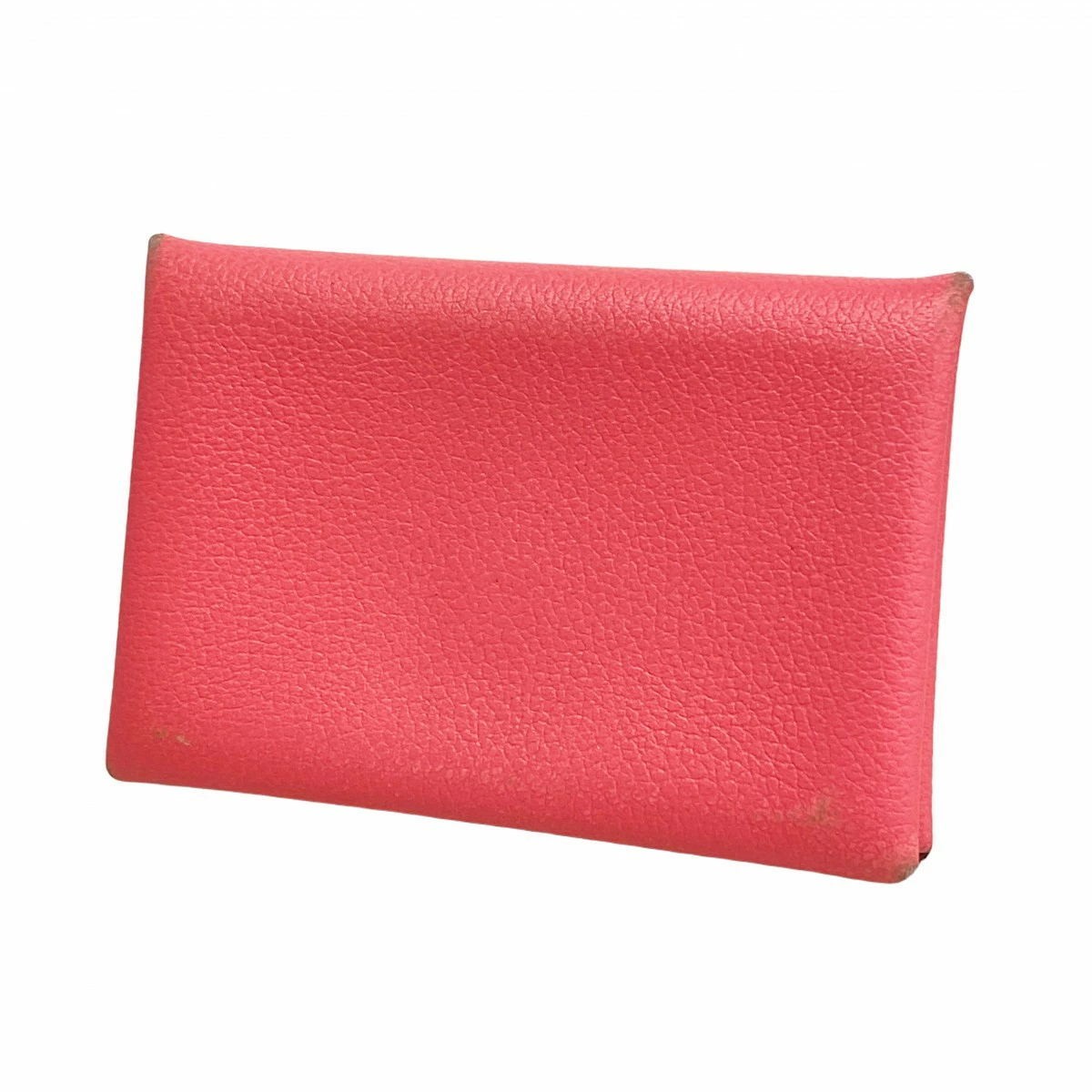 【5pc4651】エルメス カードケース カルヴィ エバーカラー ローズアザレ シルバー金具 D刻印【中古】レディース