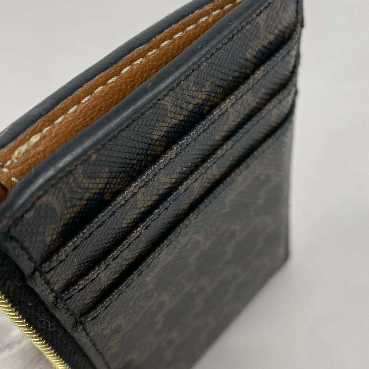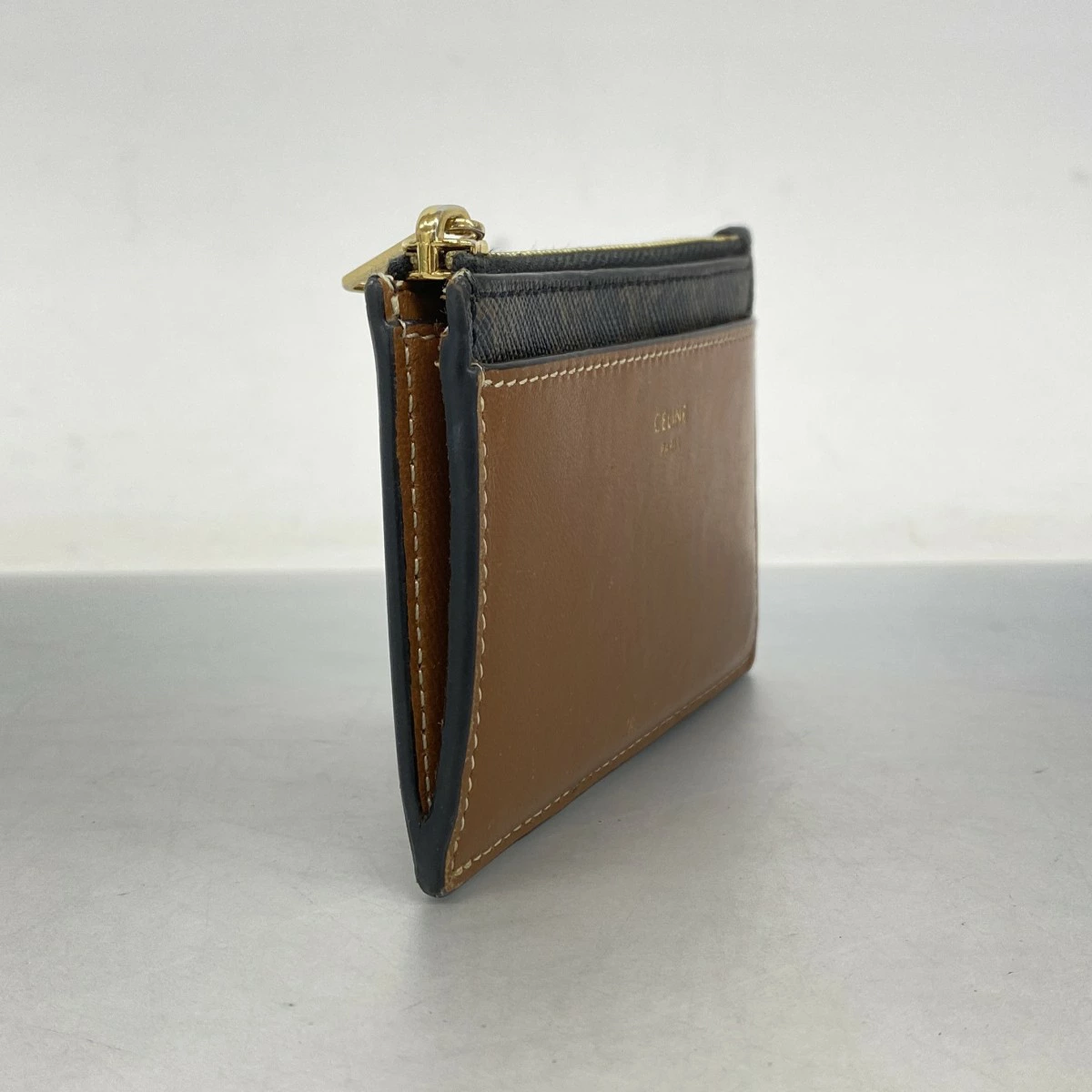 [5pd5370] Celine Triomphe Card Case in Brown/Black PVC with Gold Hardware [Pre-owned] Women's