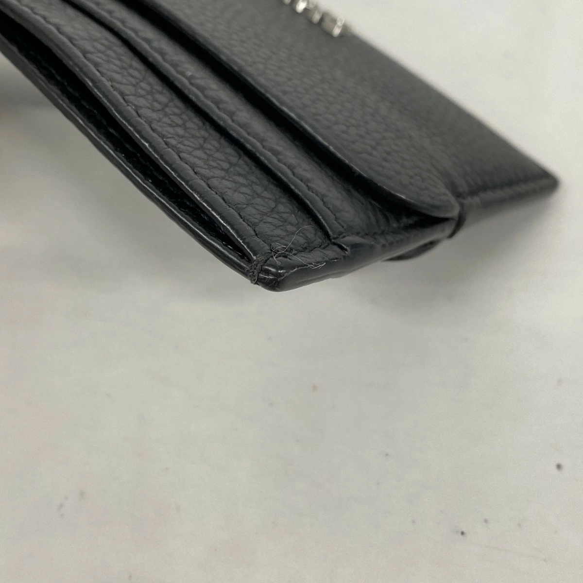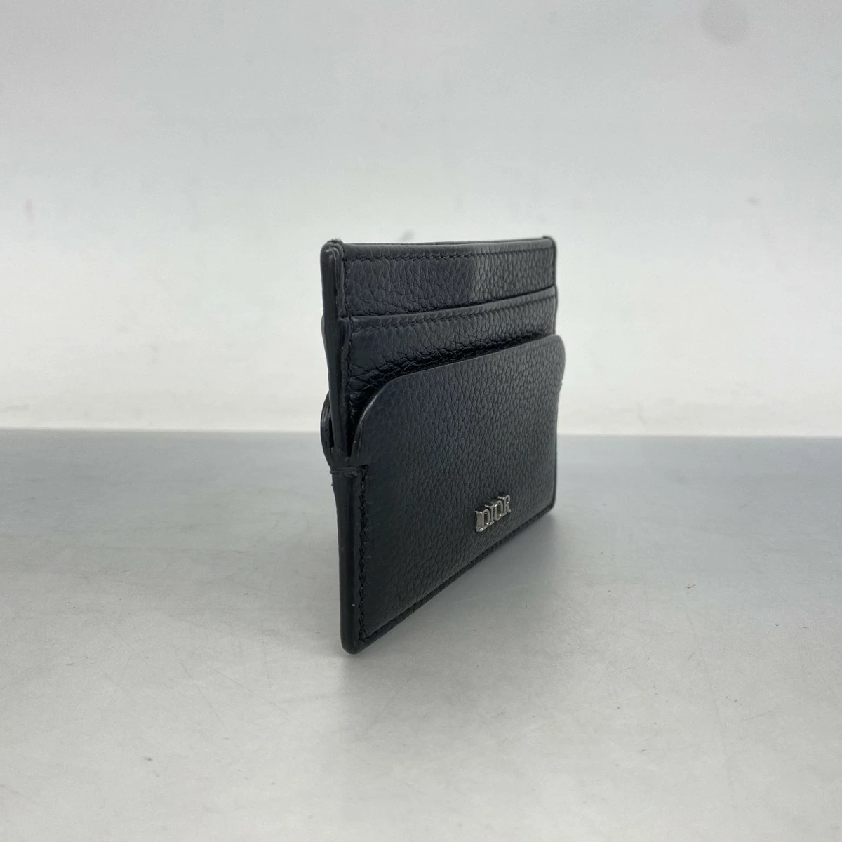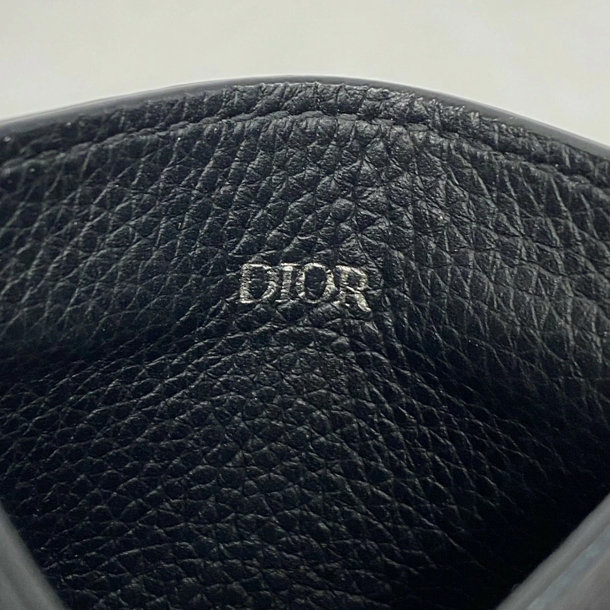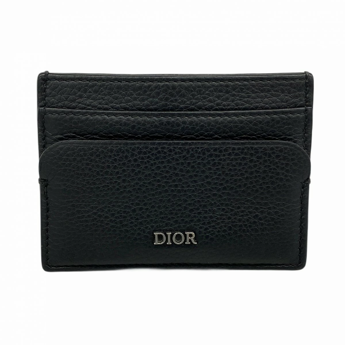 [5pd5371] Christian Dior Card Case, Black Leather with Silver Hardware [Pre-owned] Men's, Women's, Unisex