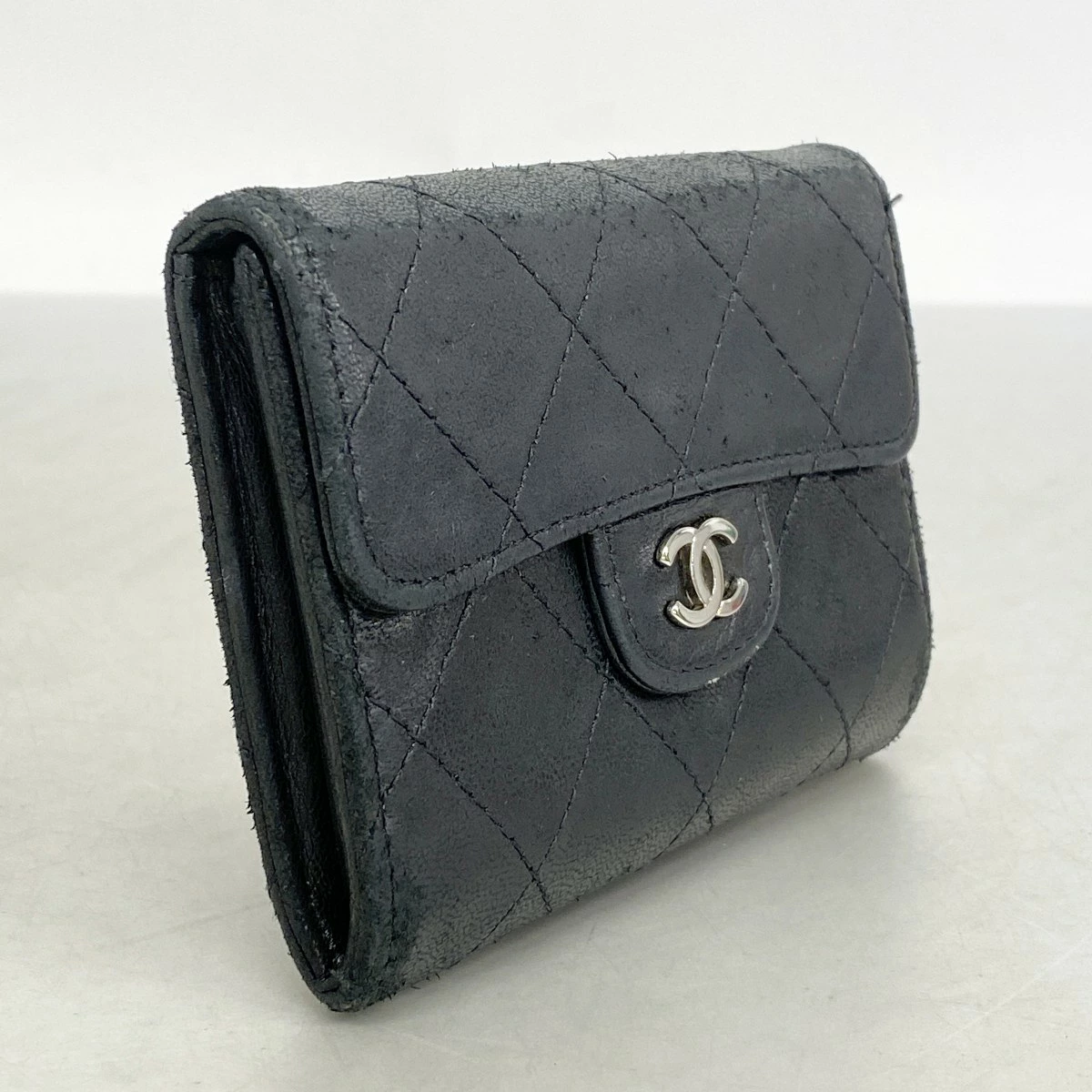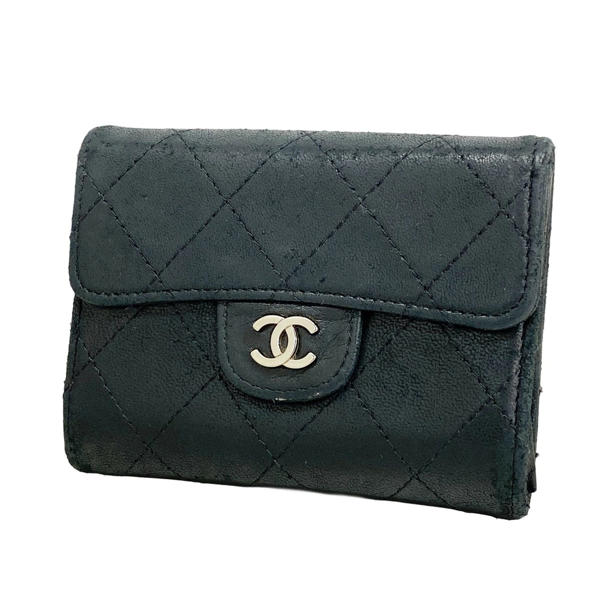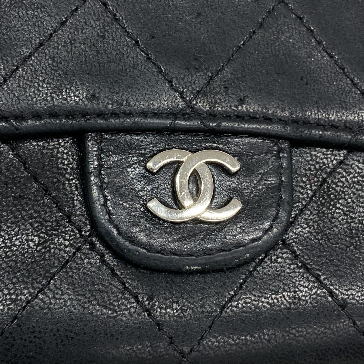 【5pd5499-k】シャネル カードケース マトラッセ ラムスキン ブラック シルバー金具【中古】メンズ レディース ユニセックス