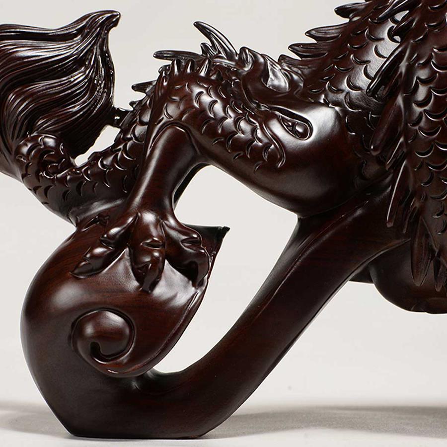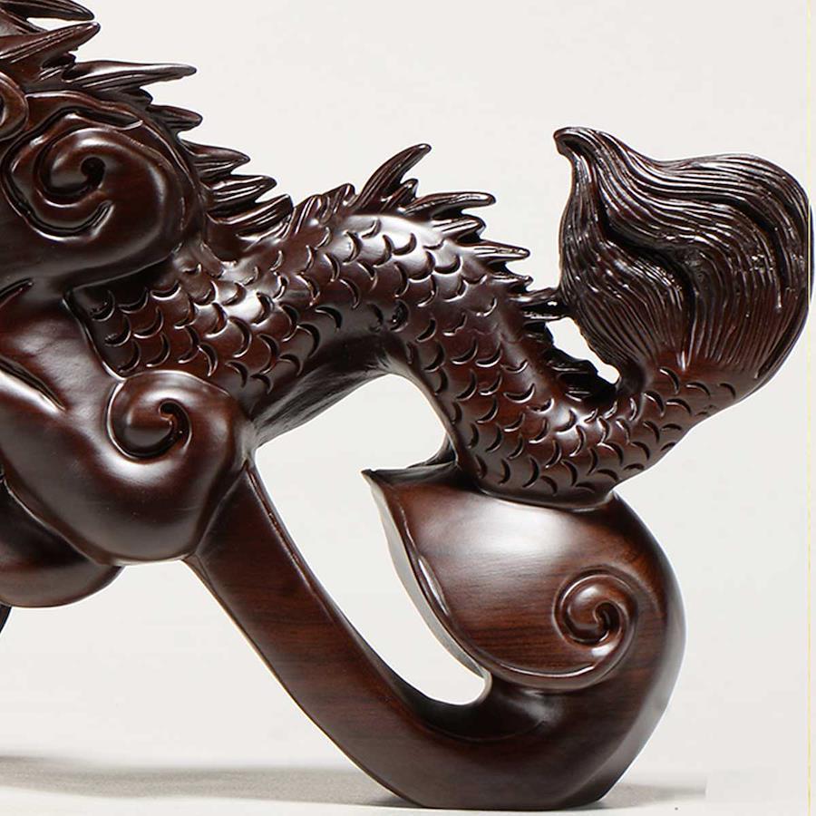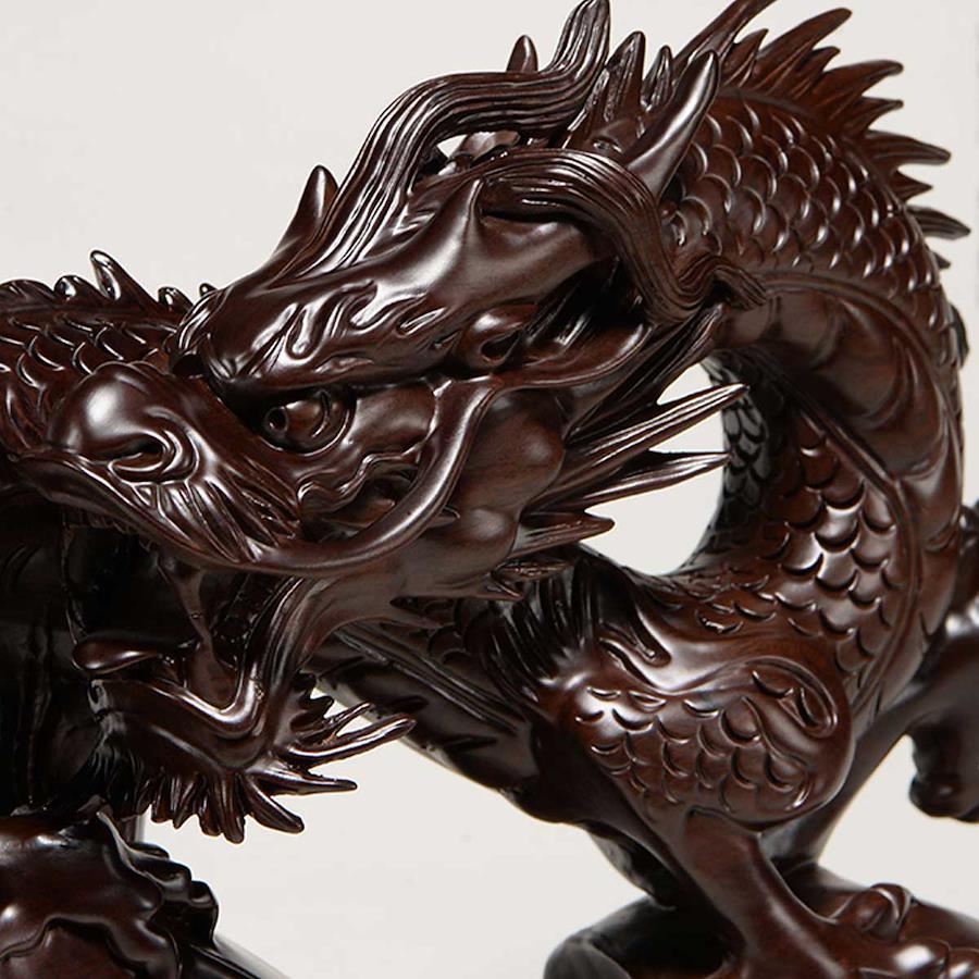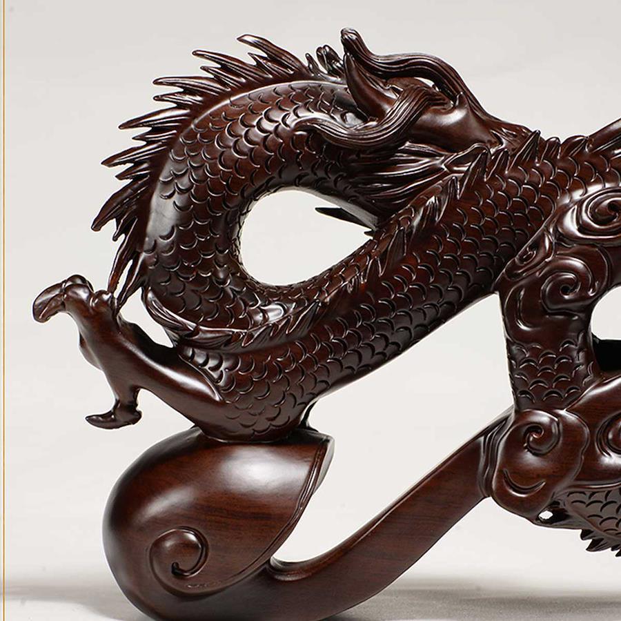 高級木材の黒壇を使用した彫刻の龍神。