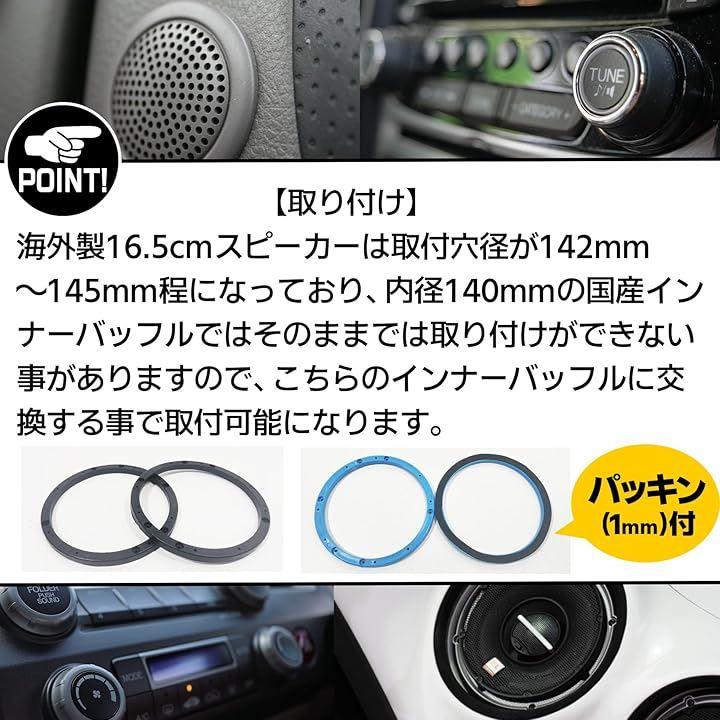 「取り付け」海外製16.5cmスピーカーは取付穴径が142mm~145mm程になっており、内径140mmの国産インナーバッフルではそのままでは取り付けができない事がありますので、こちらのインナーバッフルに交換する事で取付可能になります。