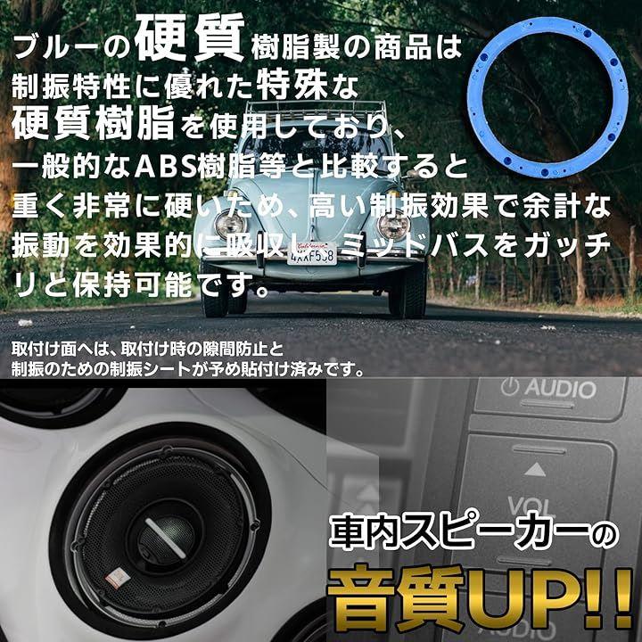 「サイズ/素材」外径165mm/内径145mm/厚み8mm+パッキン1mm / 硬質樹脂製 *一般的なABS樹脂等と比較すると重く非常に硬いため、高い制振効果で余計な振動を効果的に吸収し、ミッドバスをガッチリと保持可能です。