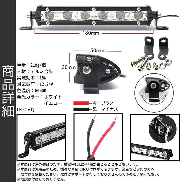 LED6連ライトバー 汎用ワークライト 18w 作業灯 フォグランプ 7インチ 12V/24V 2個セットです。