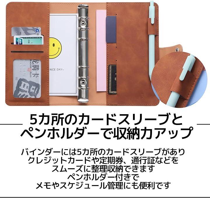 「使いやすさが魅力の6穴 A6 バインダー」 このA6サイズの6穴バインダーは、使いやすいリング設計で簡単に開閉が可能。