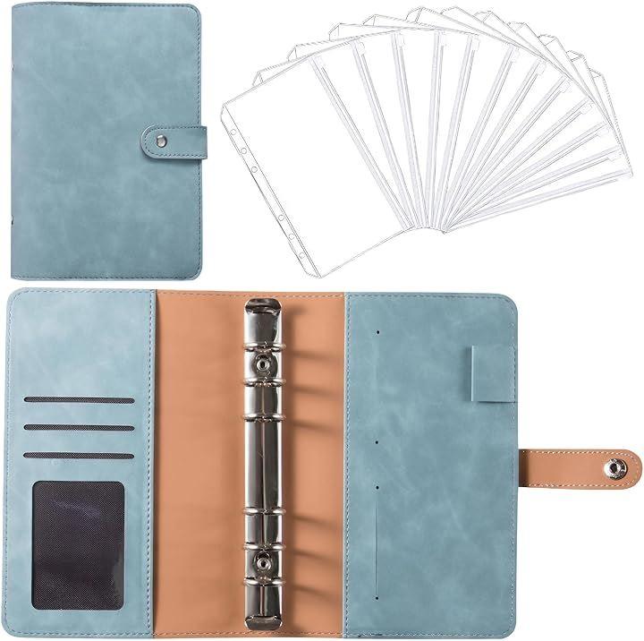 「仕様」サイズ:19x13cm、素材:PU、PVC、カラー:青、セット内容:バインダーx1、ファスナーポケットx12