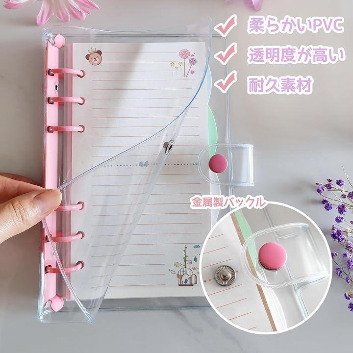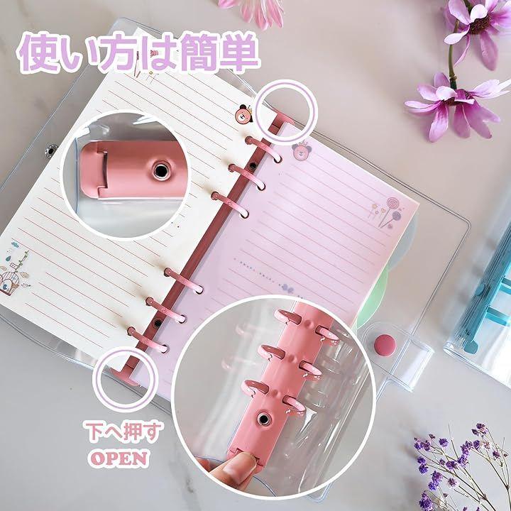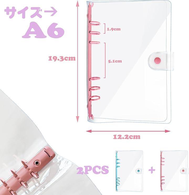 この6リング透明手帳バインダーは一般的な6穴A6サイズのシステム手帳リフィルに適しています。