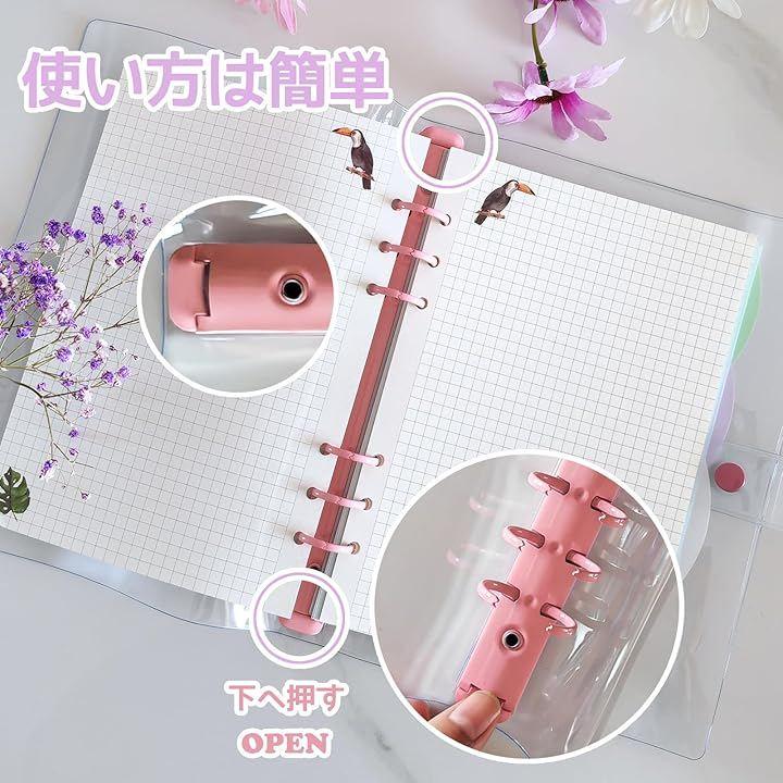 この6リング透明手帳バインダーは一般的な6穴A6サイズのシステム手帳リフィルに適しています。