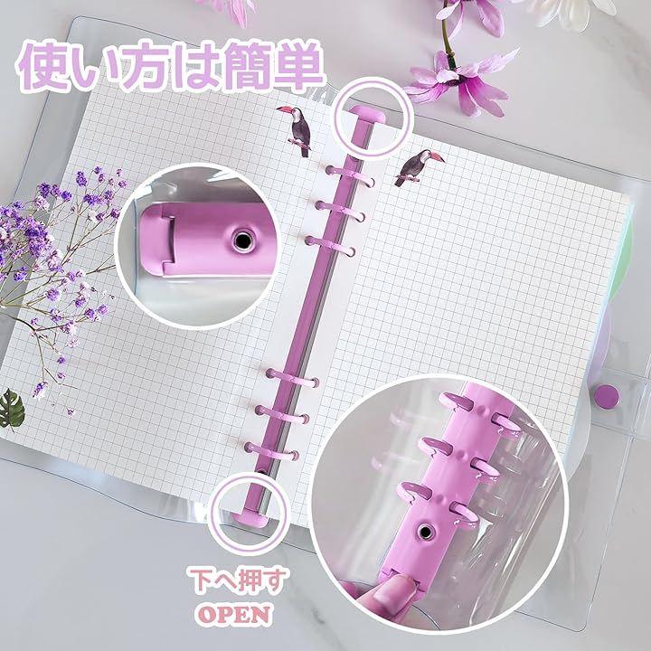 この6リング透明手帳バインダーは一般的な6穴A6サイズのシステム手帳リフィルに適しています。