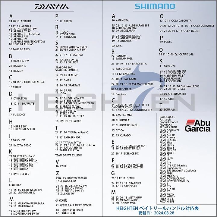 「適応機種」取付部4x7mm、5x8mm、のDAIWA, SHIMANO, ABU GARCIAのベイトリールに適用。