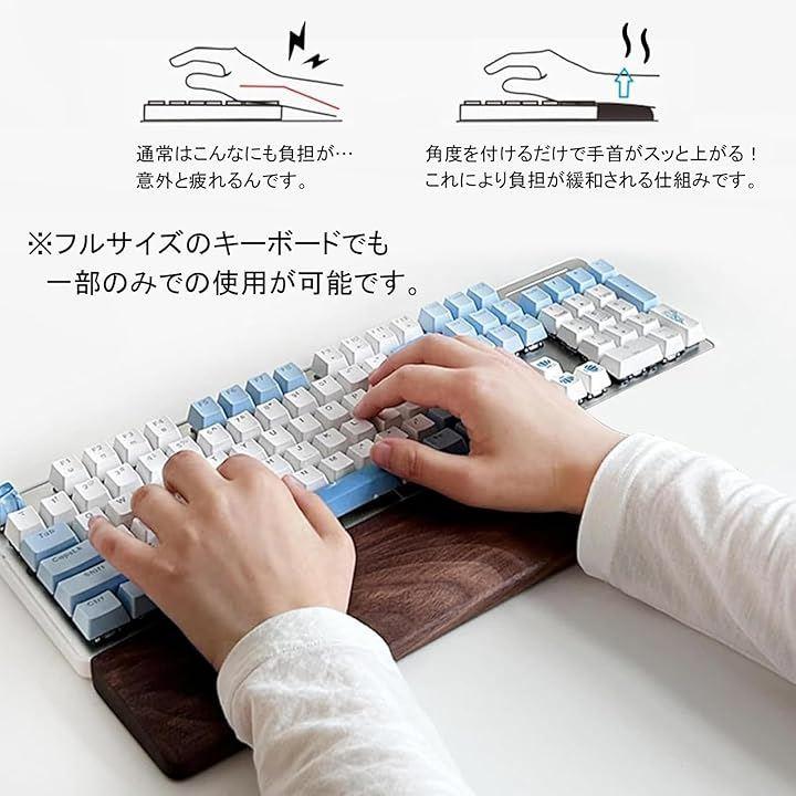 手首の負担を軽減し、快適なタイピングを叶えるウォールナット製パームレスト。