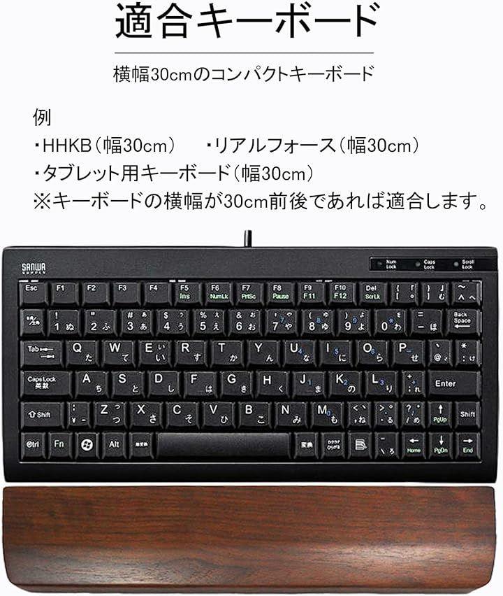 ショートサイズ(約30cm)の60%キーボード用、HHKBやリアルフォース等のキーボードにも適合する天然木の木製パームレスト。