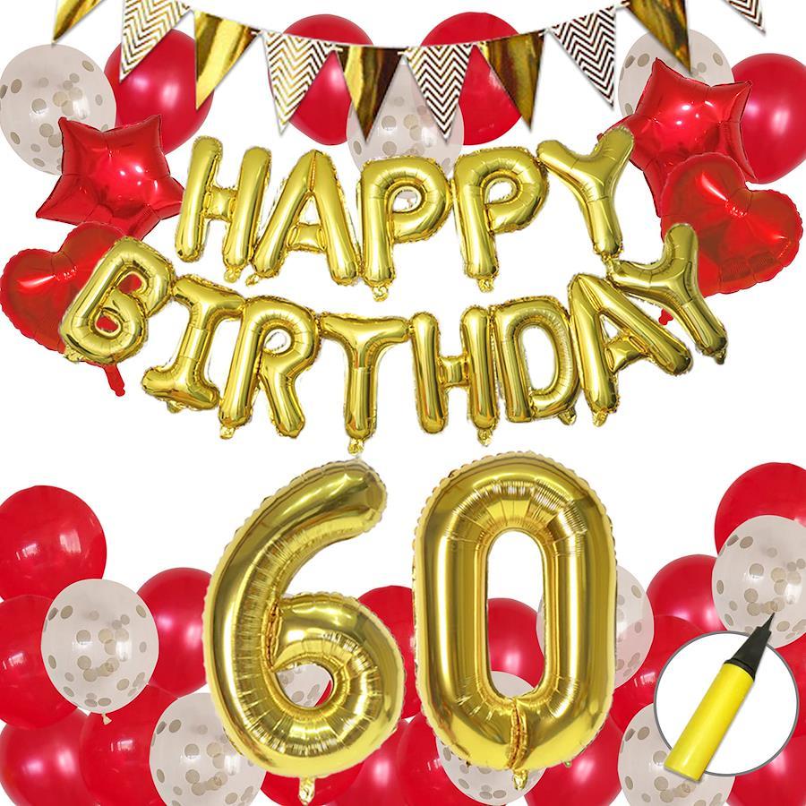 60th Birthday Celebration, 60th Birthday Number Balloon, Red, Birthday Decoration, Balloon, Decoration (Air Pump Included)