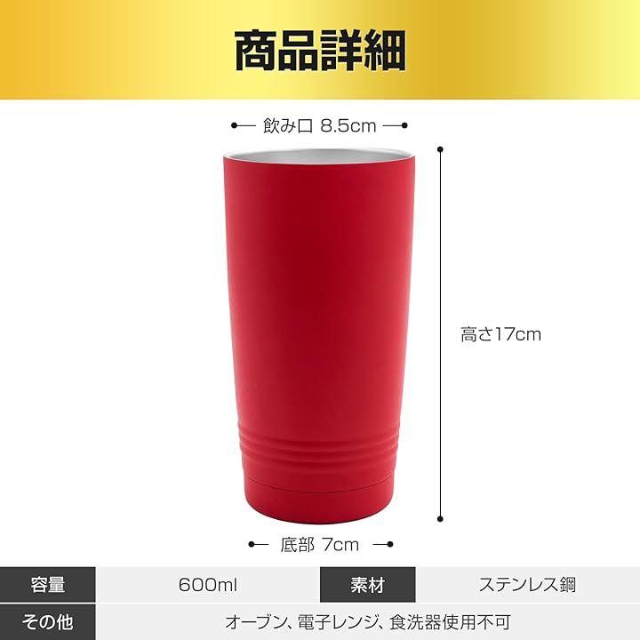「タンブラー 詳細」 真空断熱 ビールジョッキ タンブラー(約600ml) サイズ:飲み口約8.5cm、底部7cm、高さ17cm 内容量:600ml 構造:真空断熱構造 素材:内側304ステンレス 外側201ステンレス 使用不可:オーブン、電子レンジ、食洗器[ 名入れ 不可 ] 名前入れ や 文字入れ は行っておりませんのでご了承下さい。