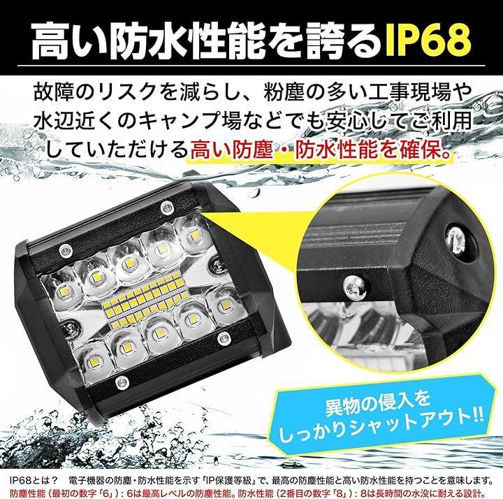 「 プロの現場から、個人の趣味まで 」 *セット内容:LED作業灯本体, 取付金具一式 *消費電力:60W *光束:6000LM *色温度:6500K(クールホワイト) *照射角:調整可能。