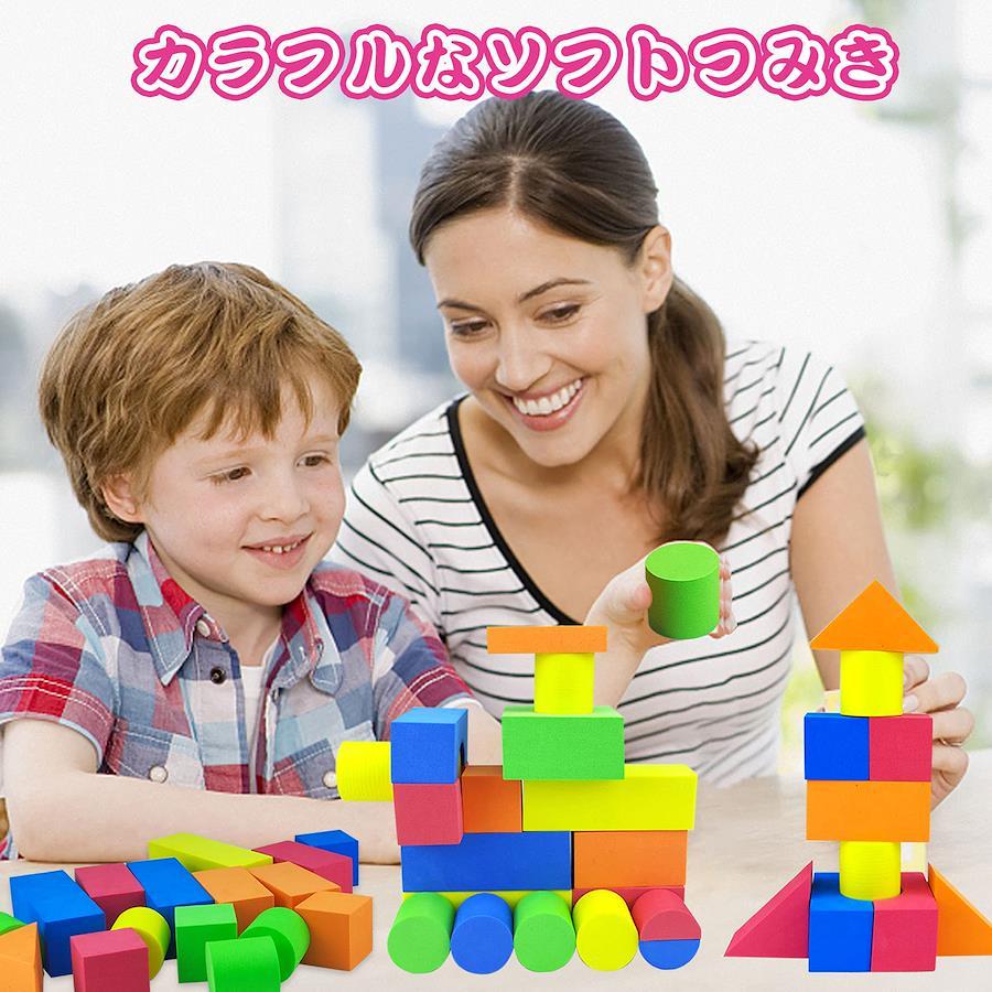 【理想的な教育おもちゃ---積み木】66ピースセット、様々なピースがあります。幾何学的なデザイン、鮮やかでカラフルな色、数学の図形、お子様が自由に組み替え可能です。 【 柔らかい積み木】積み木を積み上げたりしながら遊ぶことで、お子様の形状認識能力、観察能力、想像力、創造力、考える力を引き出します。 【安全で安心なソフトブロック】子供のおもちゃので、安全なEVA素材を使用しています。プラスチックや木製の硬い積み木やブロックより柔らかいEVA素材なので、落としてしまっても痛くありません。 【娯楽と発達】これらのフォームブロックは、お子様を何時間も夢中にさせて楽しませるのに役立つだけでなく、認知スキル(論理的思考が必要)、運動スキル(手と指の筋肉の動きが必要)、言語スキル(基本的な形を学ぶことができる)の発達にも役立ちます。 【プレゼントとして】子供にとって最高なプレゼントです。祝日、新年、誕生日、クリスマスプレゼントとして家族や友人の子供に贈ることもできます。男の子、女の子問わず遊んでいただけます。(推奨年齢6歳以上)