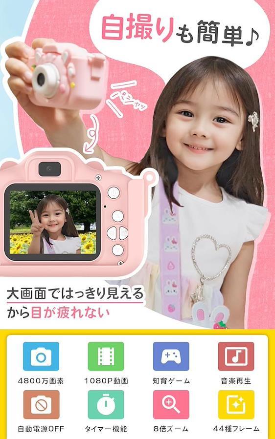 さらに、ゲームや音楽プレーヤーとしても遊べる機能があるので、子どもにとって飽きることのないカメラです。