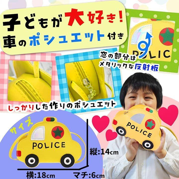パトカー型ポシェット付きで、お出かけ先でも持ち運びラクラク。