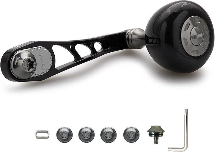 「総重」26.5g (センターナット含む)「素材」70航空アルミ製ハンドル、東レカーボン製ハンドルノブ。
