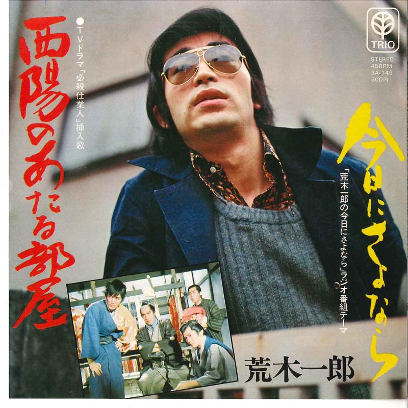 ・アーティスト荒木一郎・タイトル今日にさよなら / 西陽のあたる部屋・レーベル・型番TRIO 3A149・フォーマット7インチレコード・コンディション(盤)良い (VG+)・コンディション(ジャケット)良い (VG+)・コンディション(帯)オビなし・特記事項【カバーにシール付着】【カバー折れ/しわ】【盤に浅い跡】