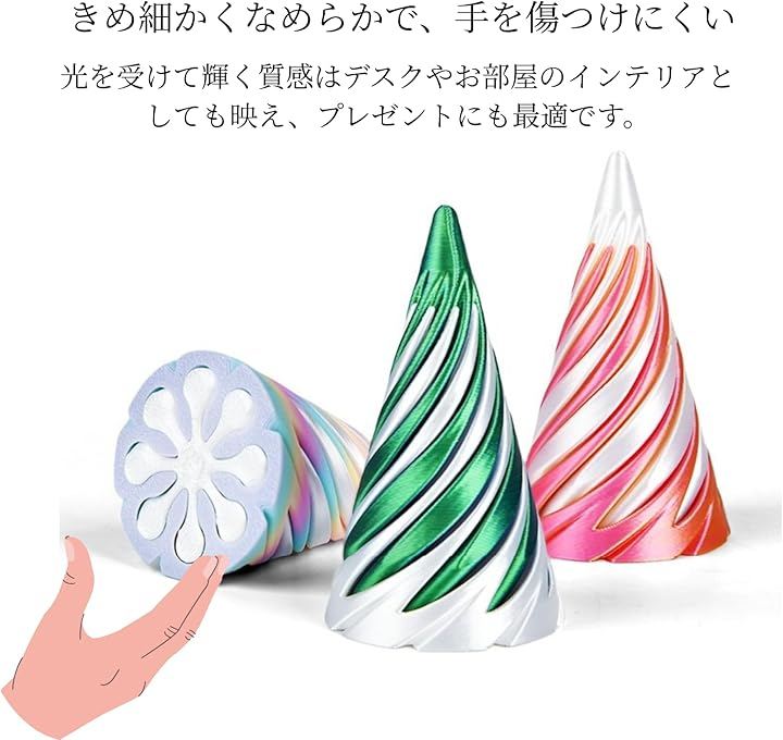 見る角度や回転の仕方によって模様が変化し、視覚と触覚の両方を刺激するユニークなフィジェットトイです。