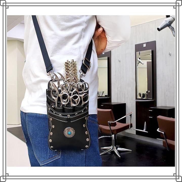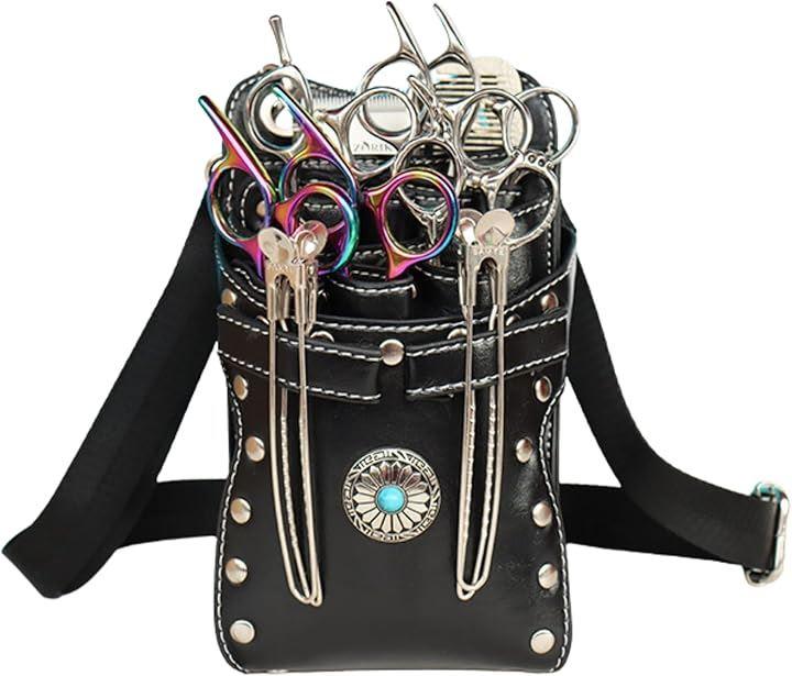 7-Piece Scissor Case for Hairdressers, Scissors, and Trimmers, Professional Grade, Waist Bag with PU Leather and Conchos