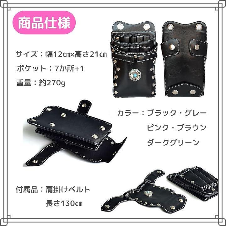 「 商品仕様 」「カラー」ブラック・グレー・ピンク・ブラウン・ダークグリーン 「仕様」高さ約21cm、幅約12cm、ショルダーベルト約130cm 「重量」約270g 「材質」PUレザー 「収納力」ハサミ7丁スペース