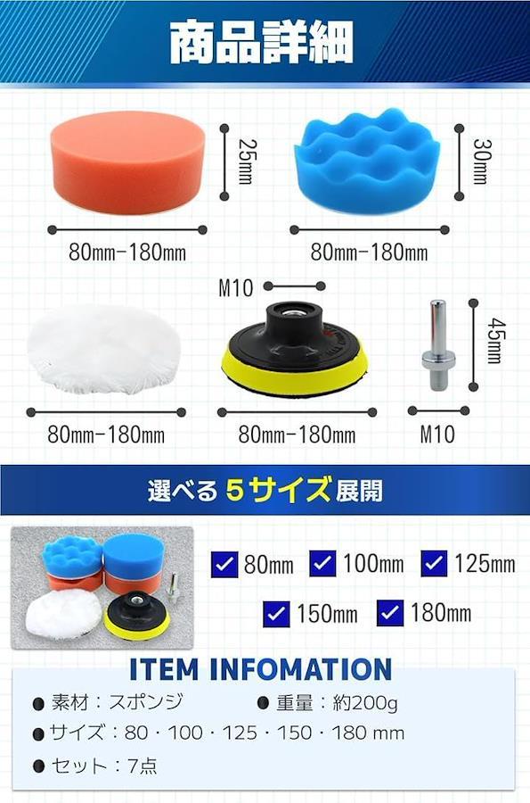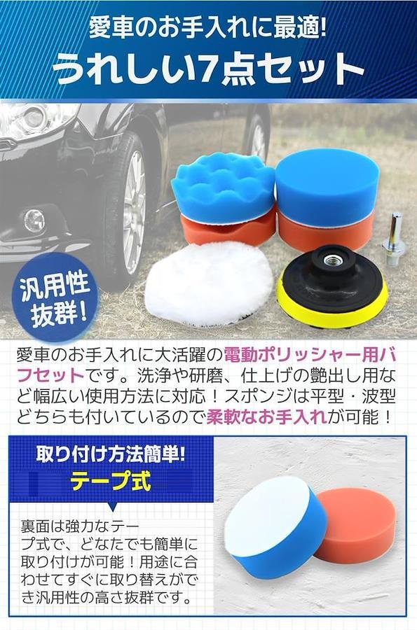 「うれしい7点セット」愛車のお手入れに大活躍の電動ポリッシャー用バフセットです。