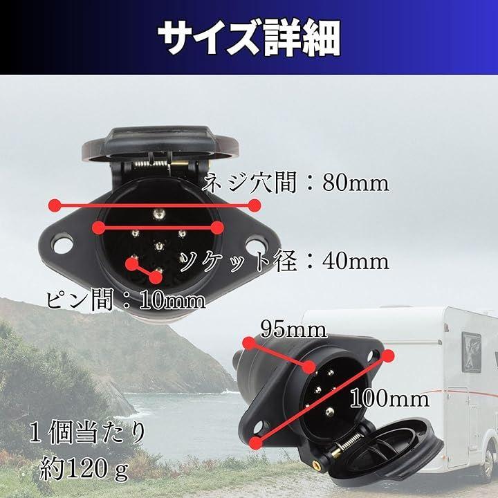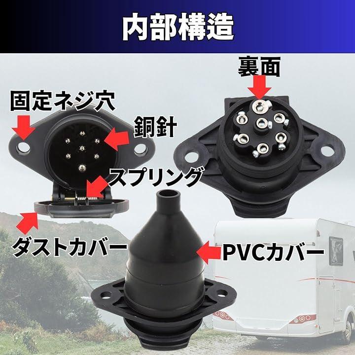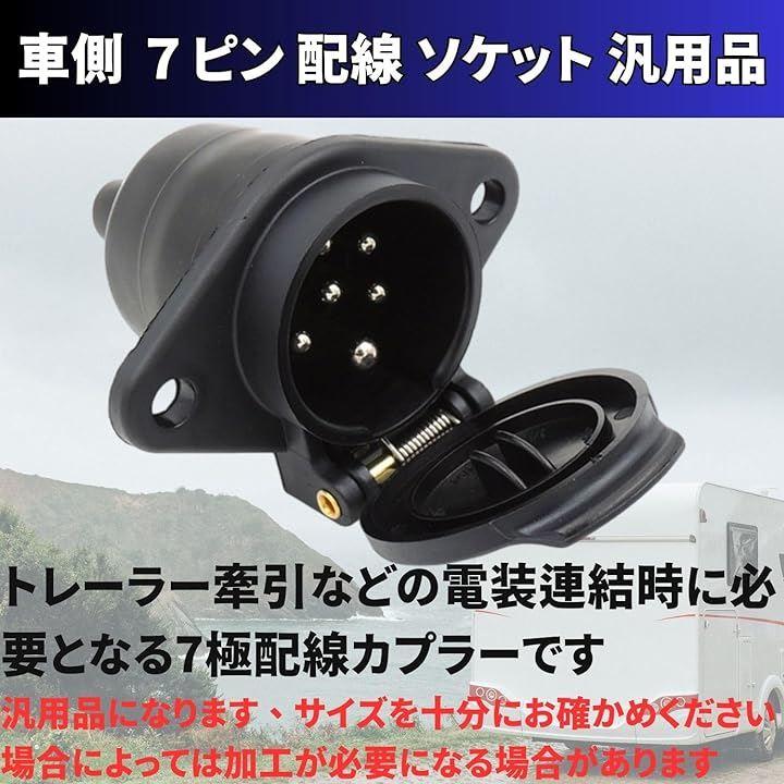この商品は、トレーラーと牽引車を連結した際に使用する、車側のプラスチック製7ピン配線ソケットです。