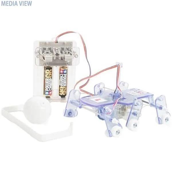 操縦するから楽しさもいっそう。6本足で動き回る昆虫型のロボット、リモコン・インセクトは手元のリモコンボックスで前後左右、自由自在にコントロール可能です。もちろん、6本の足のパーツや胴体パーツ、さらには2つのギヤボックスなど、必要な部品はすべてセット。しかも、リモコン基板に配線済みのモーターや組み立て済みのギヤボックスなど、はめ込みとビス止めで組み立ても簡単です。キットには組み立て式のボールとゴールのパーツもセット。インセクトを操縦してドリブルを練習したり、もちろん友達を集めてインセクト・サッカー大会も楽しいぞ。本体全長=116mm。本体重量=135g。ボディ材質=ABS樹脂製。ギヤボックス、モーター、コントローラー。組み立て用ドライバー付き。単3電池2本使用 (別売)。走行時間:アルカリ乾電池使用で約2時間。