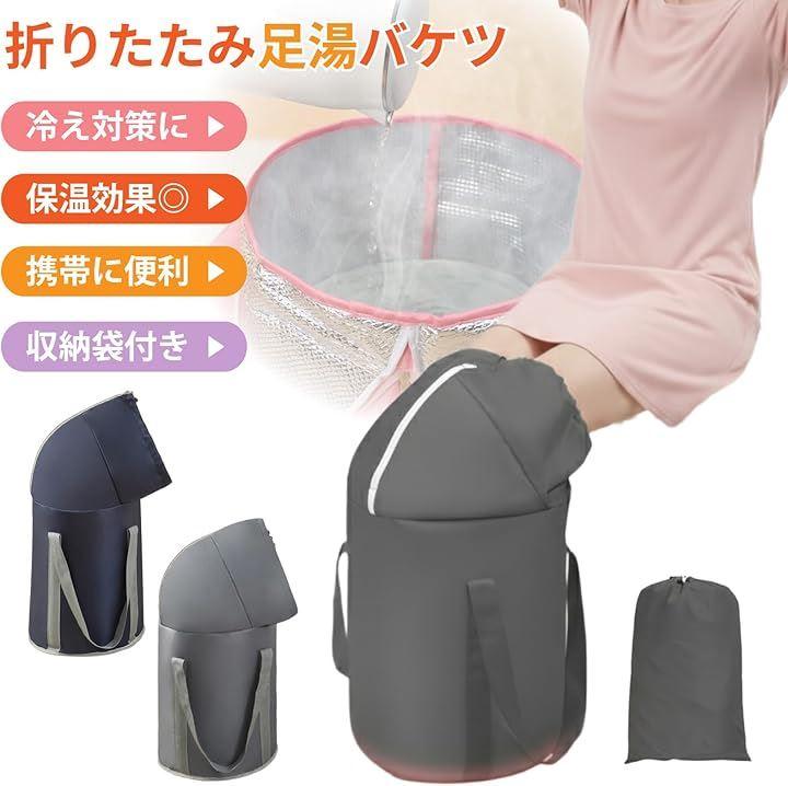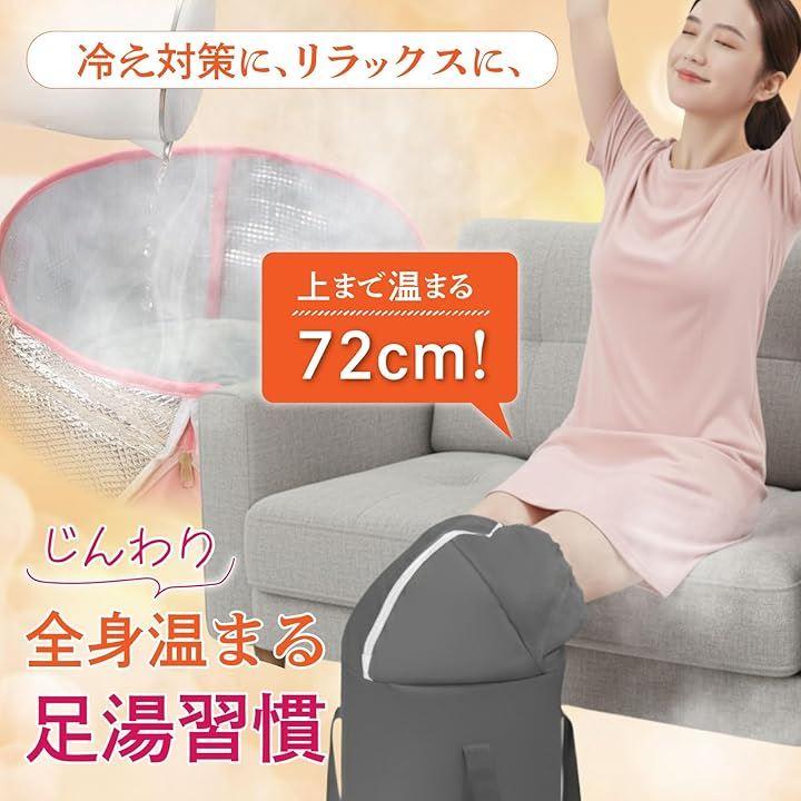 膝上までしっかり浸かれる72cmの折りたたみ式足湯バケツ。