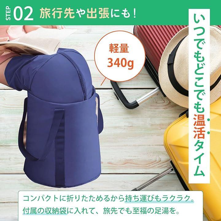 付属の収納袋に入れれば旅行や出張にも手軽に携帯でき、外出先でも自宅と同じように温かい足湯を楽しめます。