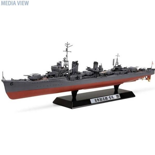 タミヤ 1/350 艦船シリーズ No.20 日本海軍 駆逐艦 雪風 プラモデル 78020 太平洋戦争の緒戦から終戦まで戦い抜いた歴戦の駆逐艦雪風。その中でも戦艦大和の護衛に就いた昭和20年4月の天一号作戦時の姿を再現したプラスチックモデル組立てキット。1/350スケール、全長338mm、全幅31mm。増強された対空機銃やレーダーなど力強い姿を余すことなくモデル化。船体は左右分割式として、外板の継目表現や舷外電路も繊細に表現。アンカーチェーンとプロペラシャフトは質感の高い金属製。各部の機銃はレーザー加工技術を駆使して消炎器や放熱板まで細密な仕上がり。主砲塔2基と魚雷発射管2基はポリキャップにより完成後も旋回可能。フルハル状態のモデルを展示できる台座付き。完成後はキットのパッケージに収納できます。