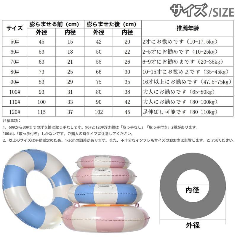商品説明: 浮き輪 60#取っ手なし/70c#取っ手なし/80#取っ手なし/90#取っ手なし/90#取っ手付き//100#取っ手付き/120#取っ手なし/120#取っ手付き 、が選択できます。サイズ: 直径70#:推薦年齢6-9歳 推薦体重:20-35KG、直径80#:推薦年齢10-15歳 推薦体重:35-50KG、直径90#:推薦年齢16歳以上大人 推薦体重47-75KG、直径100#:推薦年齢16歳以上大人 推薦体重65-80KG、直径120#:推薦年齢16歳以上大人 推薦体重80-110KG、ご注意:90#などは直径ではなく、ただのマークです。実際のサイズ説明はは、写真を参照してください。 弊店の浮き輪は高品質なビニールでできているため、安全で無毒です。厚さ0.25mmで、耐摩耗性と耐久性が向上しています。 可愛いO型リングの形、柄も可愛いにしたデザインでとっても目立ちます。 子供うきわはつかわないときは空気を抜いて、折りたたんでコンパクトに収納できます。また軽量で子供と女性も持ち運び便利の大人用浮き輪です。 浮き輪 は海やプールで大活躍!!まったく泳げない人や子ども用、あるいは海上でぷかぷか浮いていたい人におススメです。夏といえばやっぱり一度は海やプールに行って冷たい水でみんなとはしゃぎたい!と言う~ そんな時にぴったりのかわいいビーチグッズです。【ご注意】本品は救命用具に作られたものではありません。子供は必ず保護者様や監視者様の元でご使用ください。 初期不良について: 納品する前に100%インフレータブル検査を実施しており、製品の認定率は90%を超えています。購入された商品が正常に機能しない又は欠品・破損等があった場合、再発送や返金にて対応させて頂きます。 浮き輪 60#取っ手なし/70c#取っ手なし/80#取っ手なし/90#取っ手なし/90#取っ手付き//100#取っ手付き/120#取っ手なし/120#取っ手付き 、が選択できます。サイズ: 直径70#:推薦年齢6-9歳 推薦体重:20-35KG、直径80#:推薦年齢10-15歳 推薦体重:35-50KG、直径90#:推薦年齢16歳以上大人 推薦体重47-75KG、直径100#:推薦年齢16歳以上大人 推薦体重65-80KG、直径120#:推薦年齢16歳以上大人 推薦体重80-110KG、ご注意:90#などは直径ではなく、ただのマークです。実際のサイズ説明はは、写真を参照してください。 弊店の浮き輪は高品質なビニールでできているため、安全で無毒です。厚さ0.25mmで、耐摩耗性と耐久性が向上しています。 可愛いO型リングの形、柄も可愛いにしたデザインでとっても目立ちます。 子供うきわはつかわないときは空気を抜いて、折りたたんでコンパクトに収納できます。また軽量で子供と女性も持ち運び便利の大人用浮き輪です。 浮き輪 は海やプールで大活躍!!まったく泳げない人や子ども用、あるいは海上でぷかぷか浮いていたい人におススメです。夏といえばやっぱり一度は海やプールに行って冷たい水でみんなとはしゃぎたい!と言う~ そんな時にぴったりのかわいいビーチグッズです。【ご注意】本品は救命用具に作られたものではありません。子供は必ず保護者様や監視者様の元でご使用ください。 初期不良について: 納品する前に100%インフレータブル検査を実施しており、製品の認定率は90%を超えています。購入された商品が正常に機能しない又は欠品・破損等があった場合、再発送や返金にて対応させて頂きます。