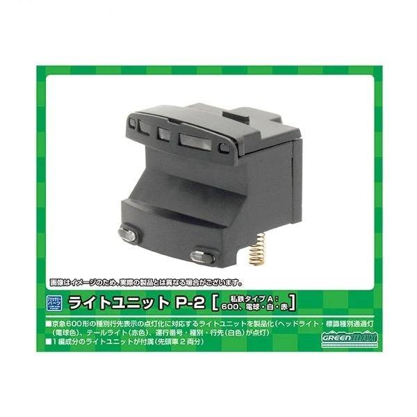 8382 グリーンマックス ライトユニット P-2 (私鉄タイプA:600、電球・白・赤) Nゲージ 鉄道模型京急600形に対応するライトユニット1編成分のライトユニットが付属(先頭車2両分)ヘッドライト・標識種別通過灯(電球色)、テールライト(赤色)、運行番号・種別・行先(白色)が点灯※4000品番の旧動力製品は交換して取り付けることができません。※本製品にボディ、ステッカー、車両マーク、塗料は付属しません。※商品の仕様は一部実物と異なる場合があります。