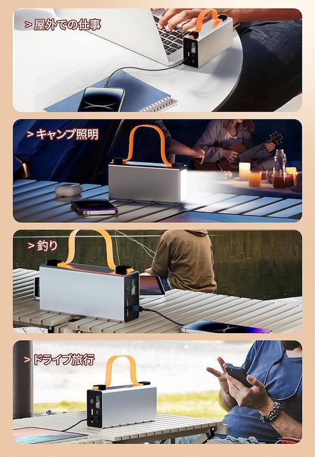 iPhone 15 Pro を最大 16 回、MacBook Air 15'' を最大 5.5 回満充電でき、自動車、旅行、キャンプやその他のアウトドア活動に非常に適しています。