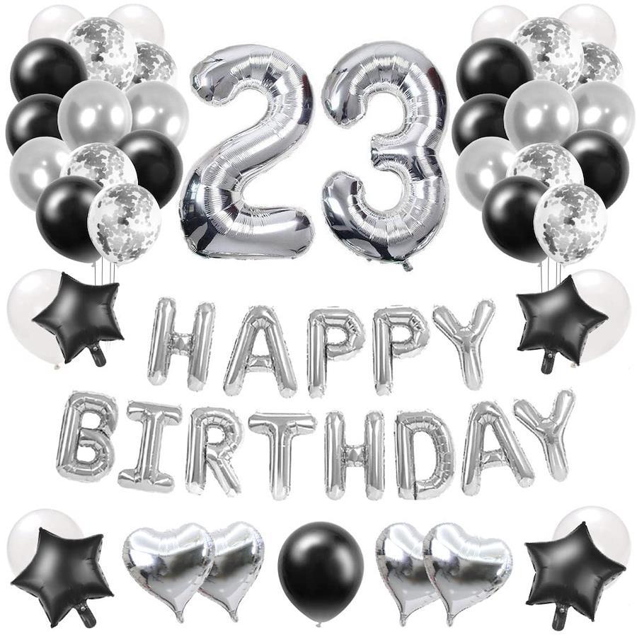 88-piece 23rd Birthday Decoration Balloon Set Number Balloons Combination "HAPPY BIRTHDAY" Land Heart Balloons Confetti Balloons Dot Stickers Decoration Party Celebration Surprise Silver & Black Boys Girls