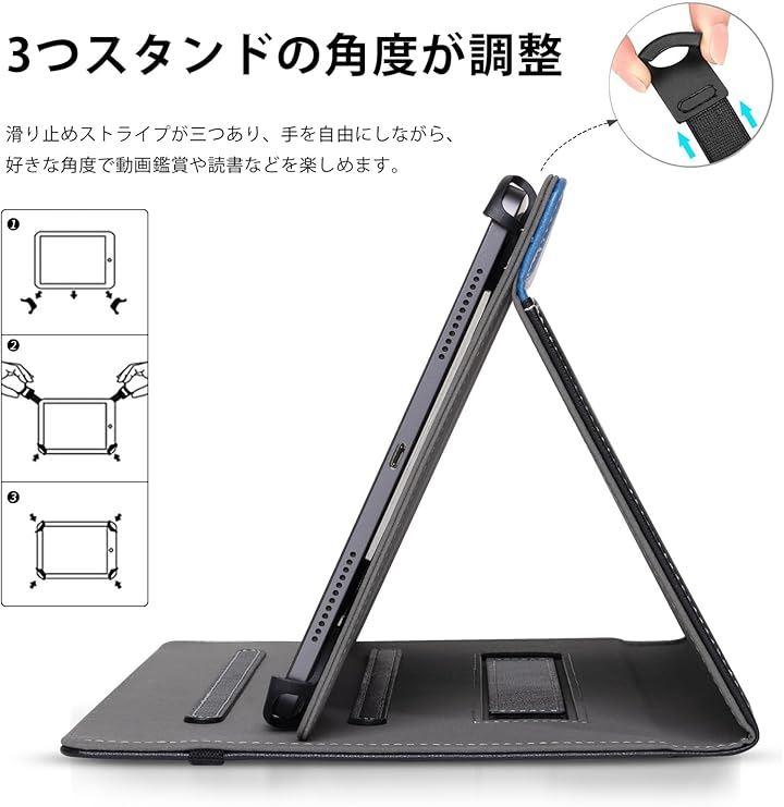 スタンド機能が付いて、好きな角度で動画鑑賞や読書などを楽しめます;滑り止めストライプが三つあり、複数の水平スタンド角度を設定できます。