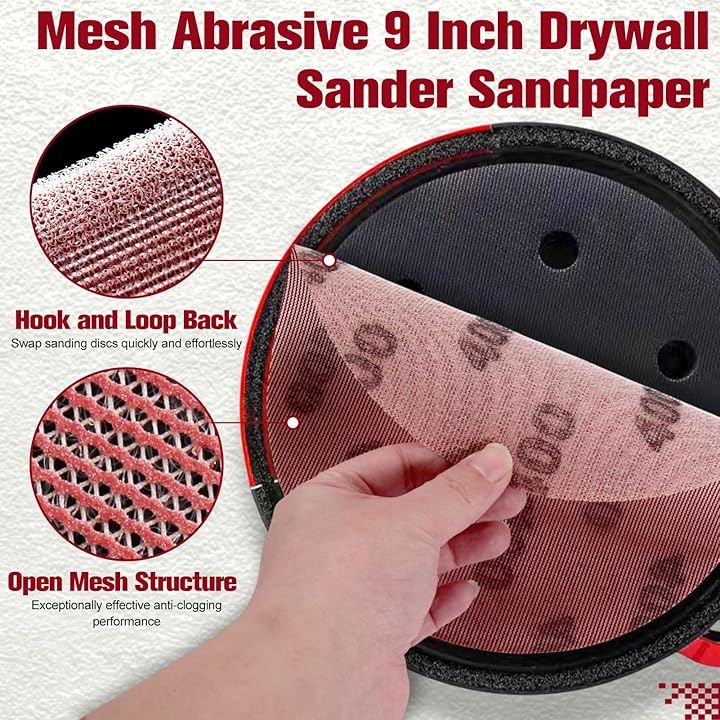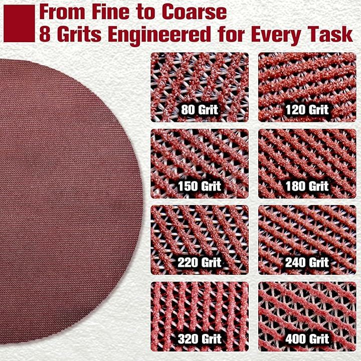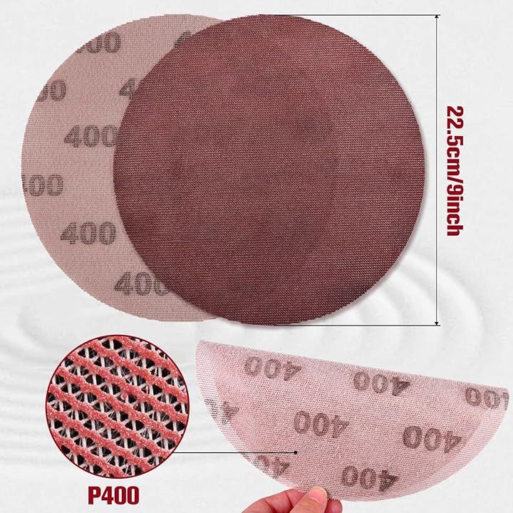 9-inch Mesh Sandpaper, 15-Piece Set, Dust Reduction, High Durability, Mesh Sanding Discs for Woodworking, Metal, and Painted Surfaces, 225mm, Dry Sanding Compatible, Clogging Prevention